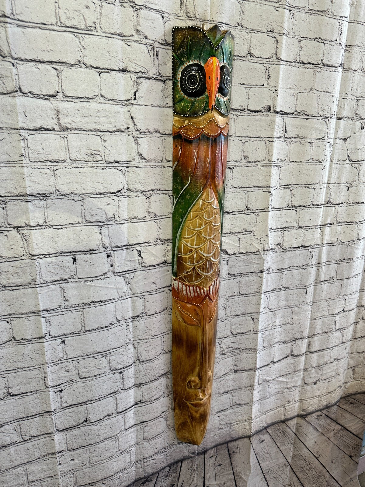 100cm Owl Head Hand Carved Fair Trade Wooden Animal Wall Art Wall Hang Mask