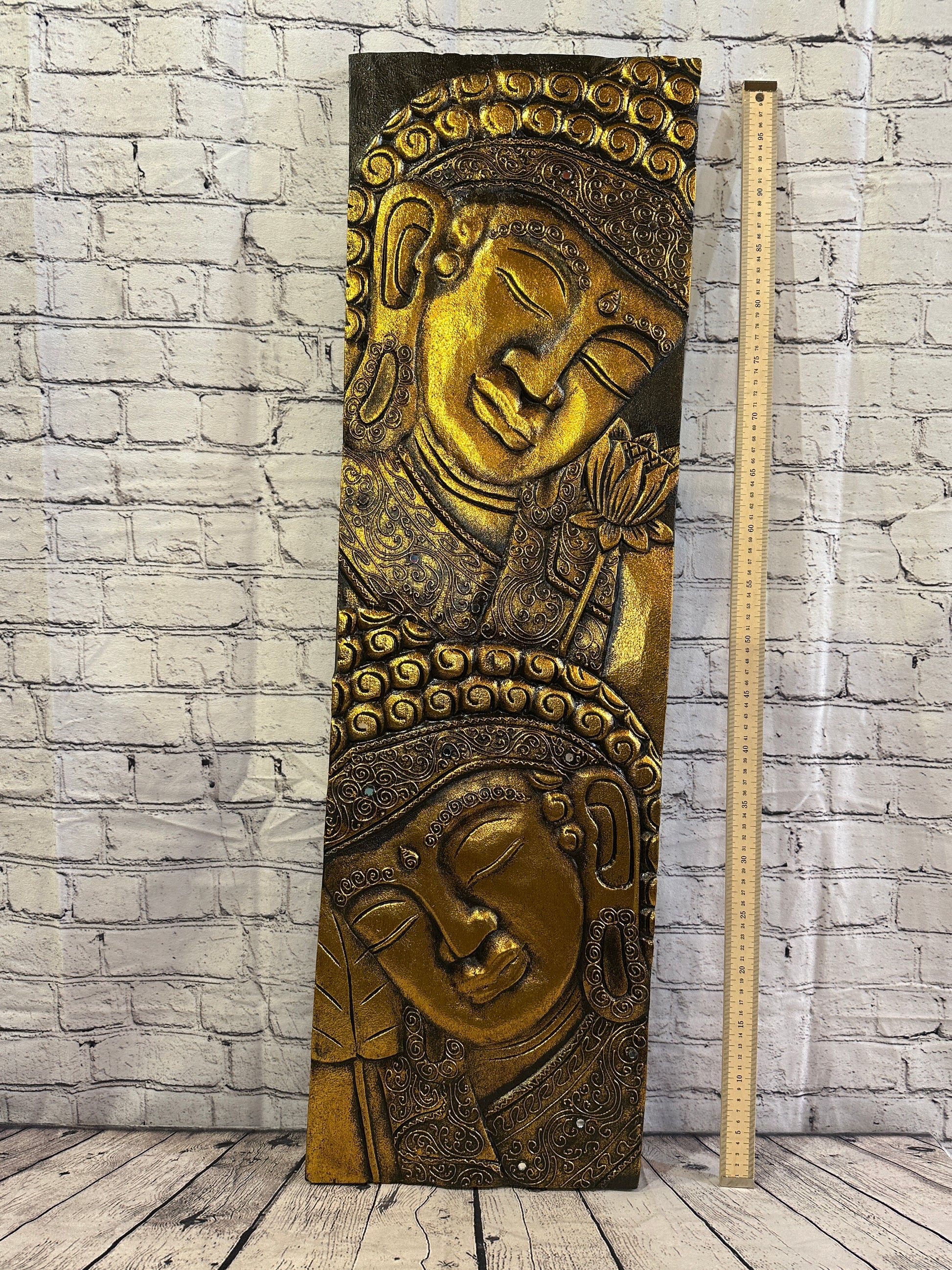 100cm x 30cm Tall Buddha 2 Faces Gold Wooden Wood Panel Wall Art Plaque