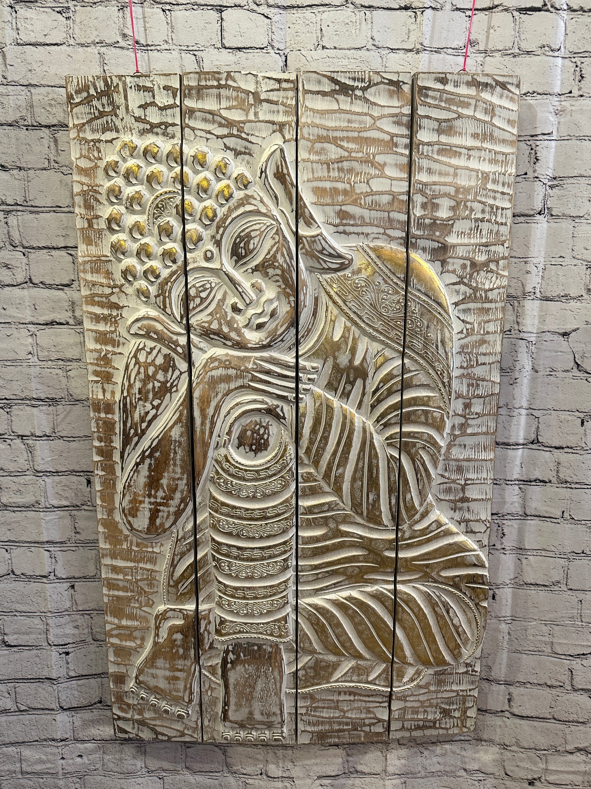 100cm x 60cm Buddha Brown Gold Wooden Wood Panel Wall Art Plaque Handcarved