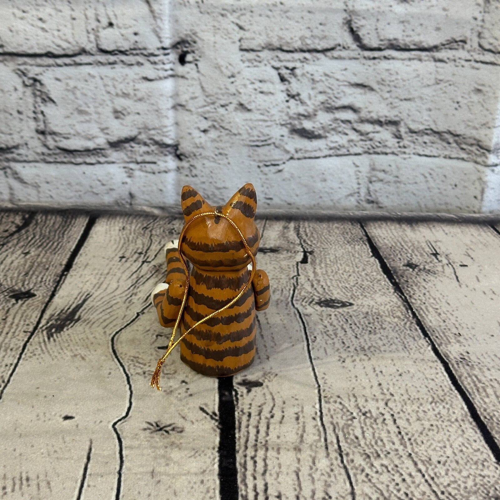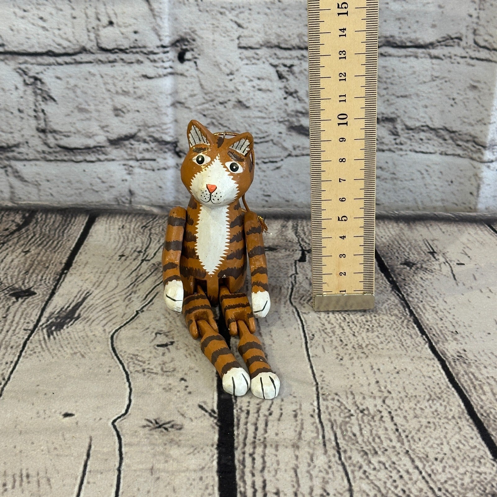 10cm Tabby Cat Sitting Animal, Wooden Shelf Ornament Handmade and Fairtrade