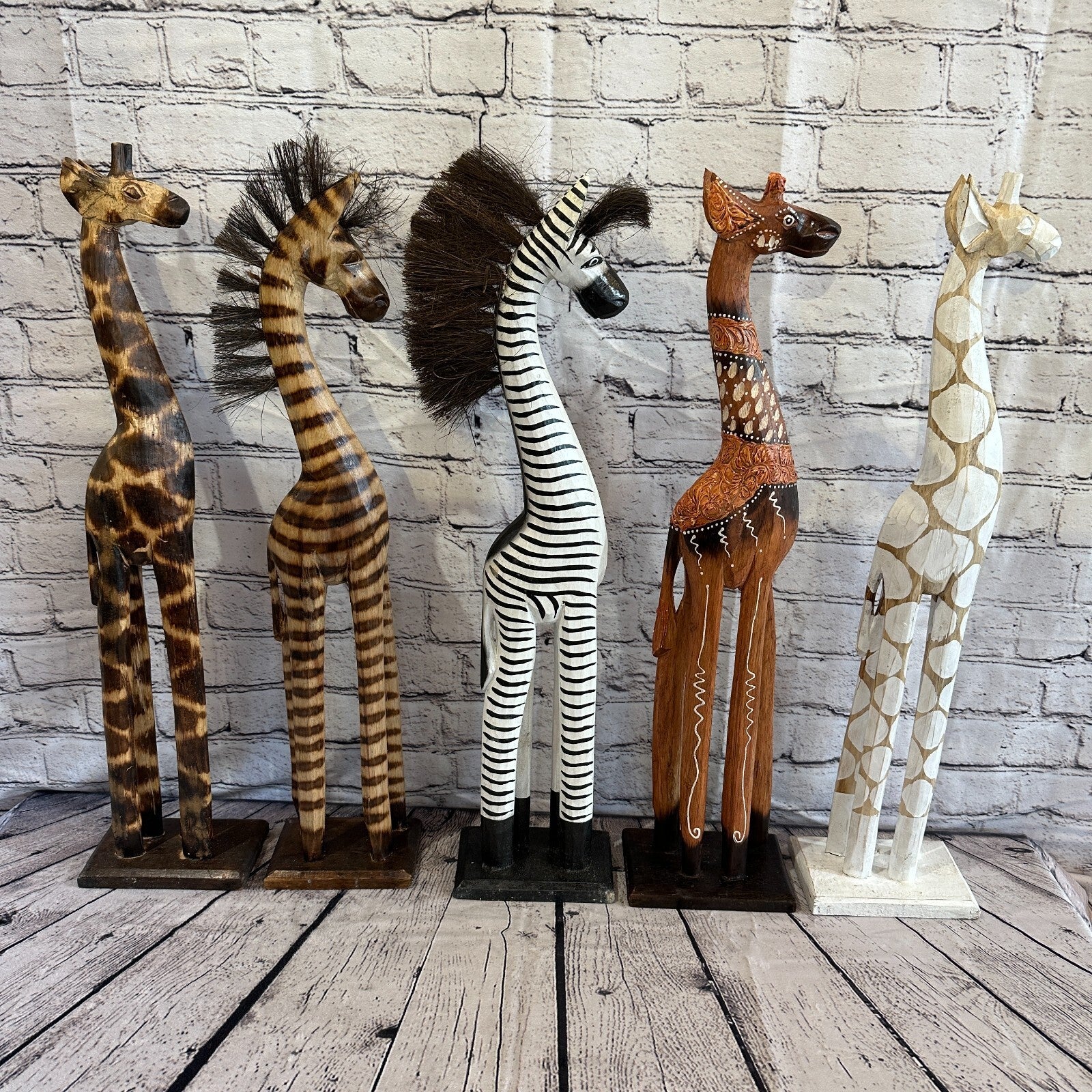 120cm Burnt Pattern Wood Horse Tall Statue Wood Modern Hand Carved Painted