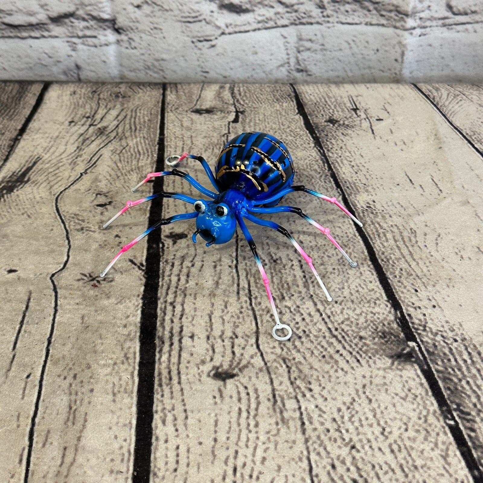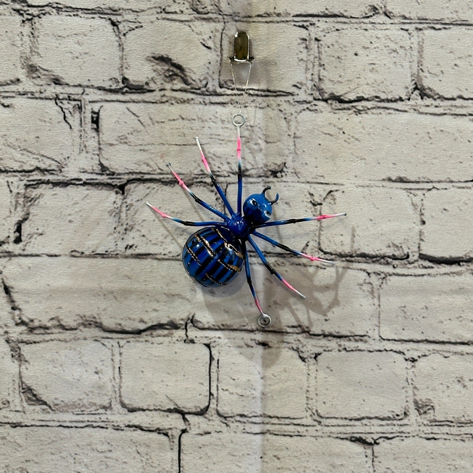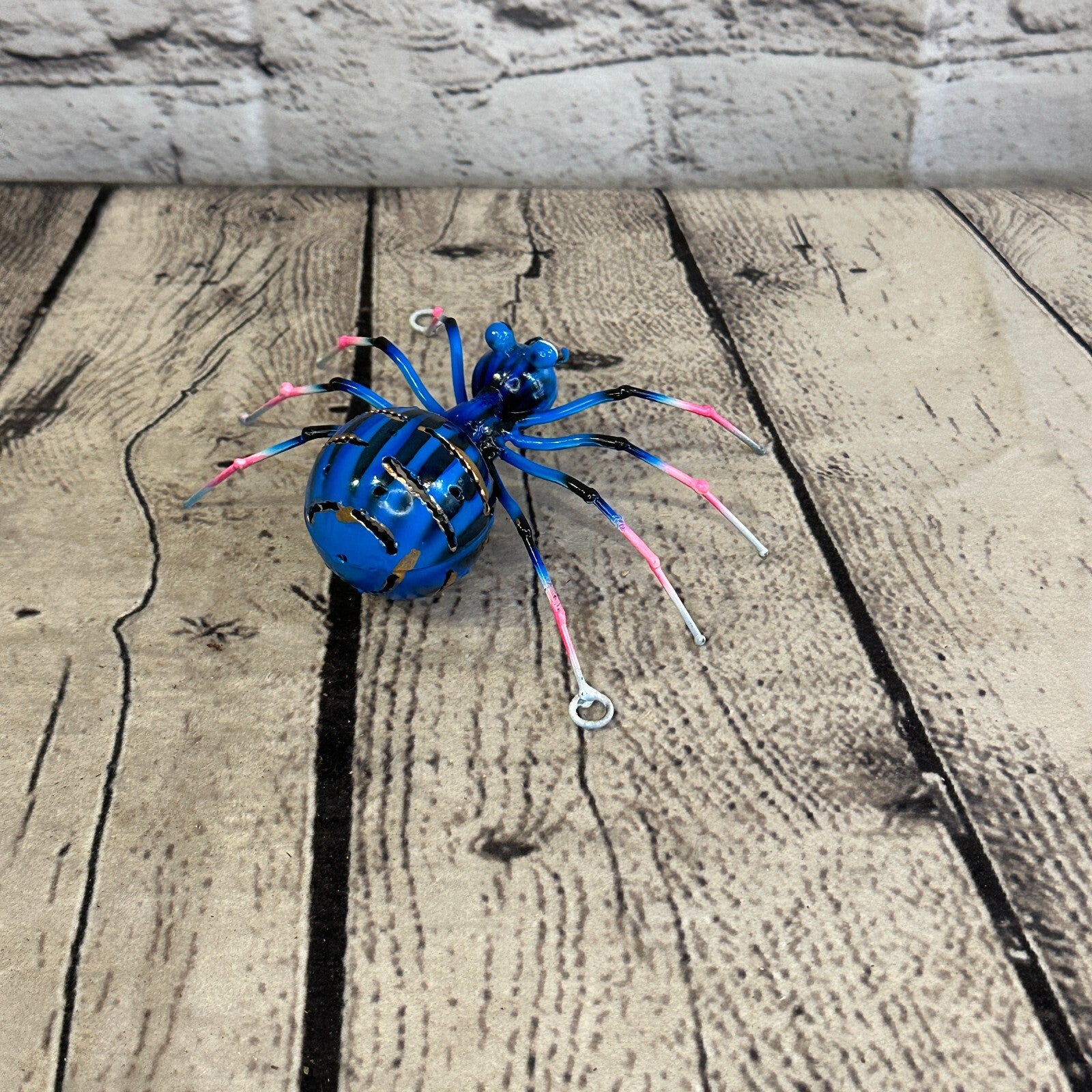 12cm x 8cm Blue Spider Bug Metal Tin Wall Hanging Ornament Painted Statue