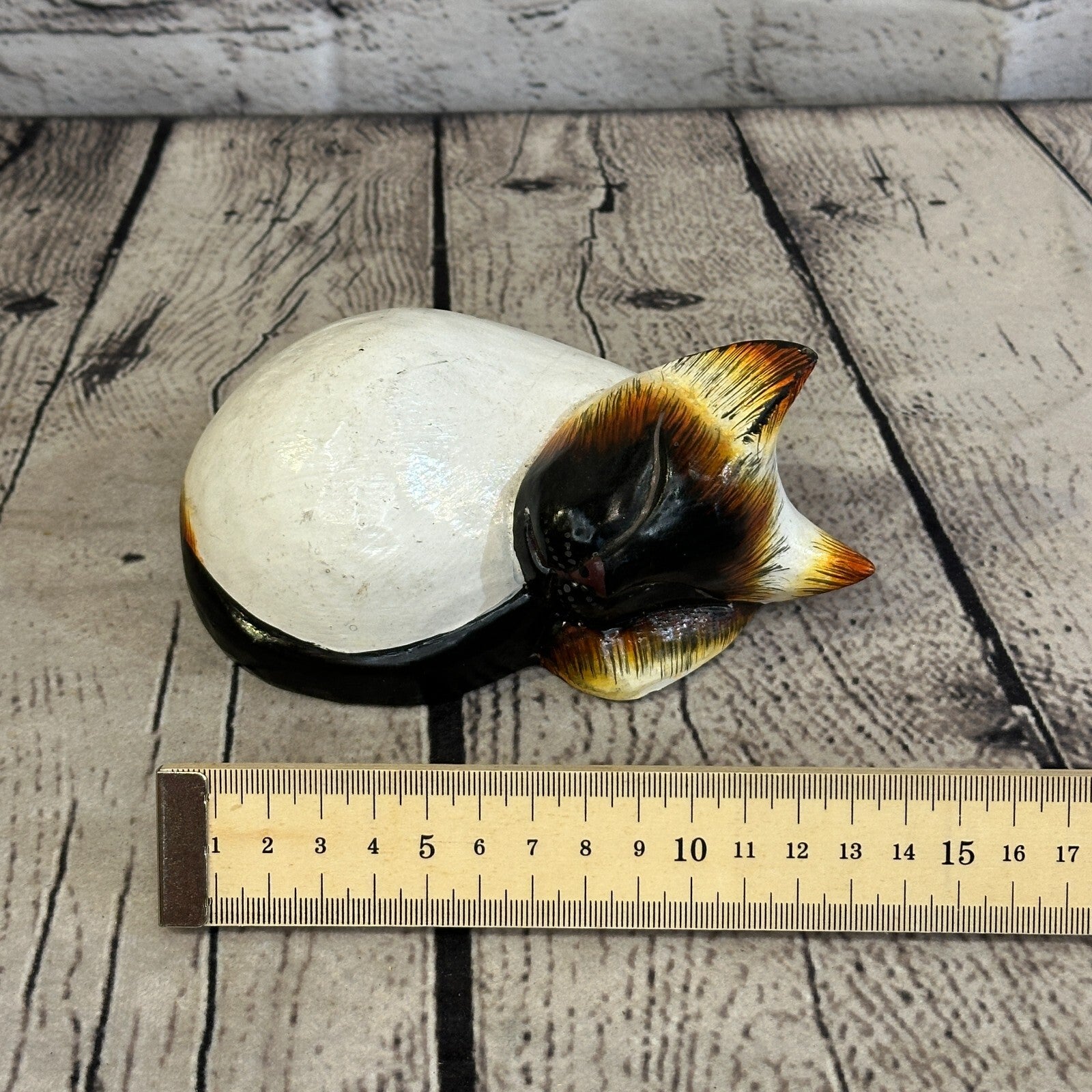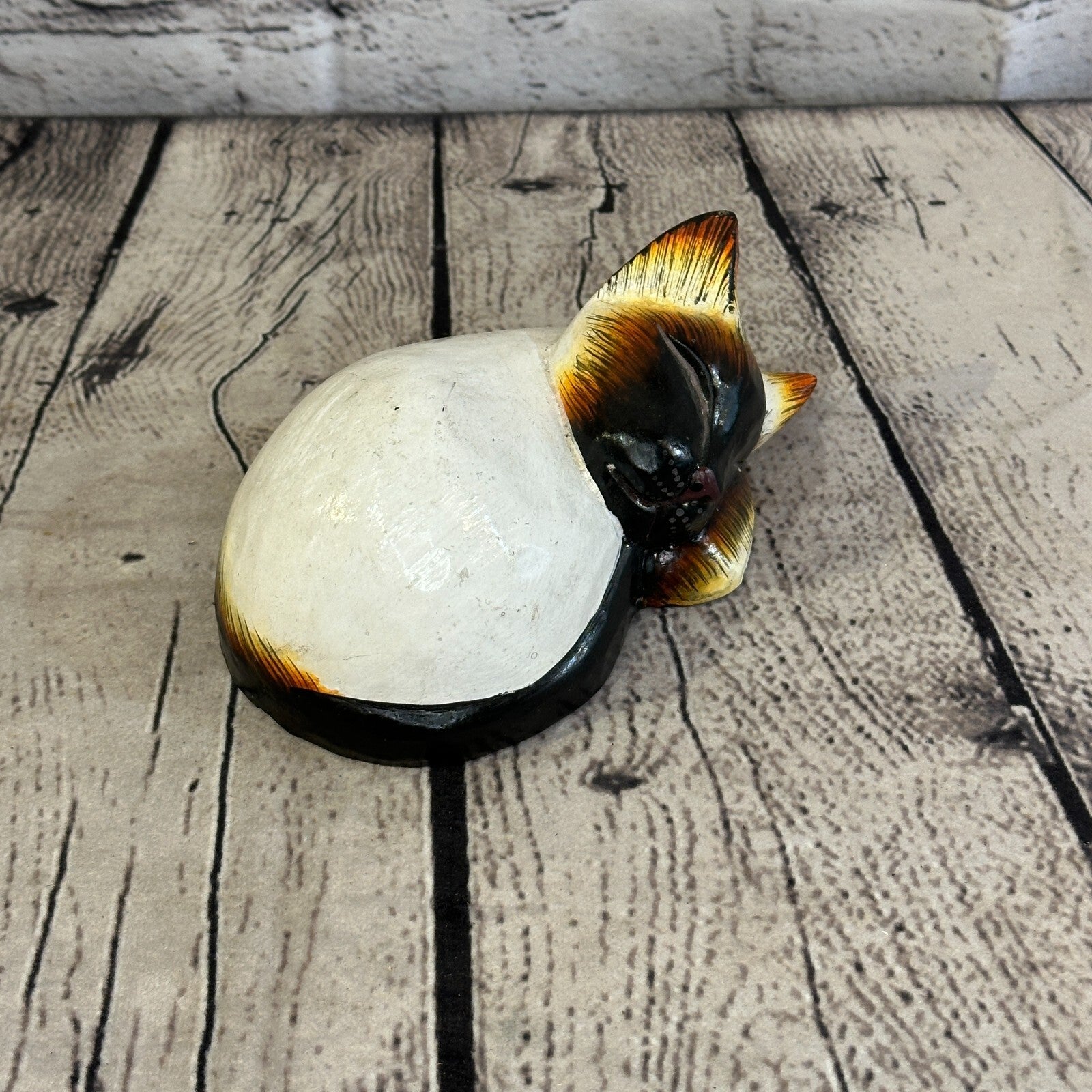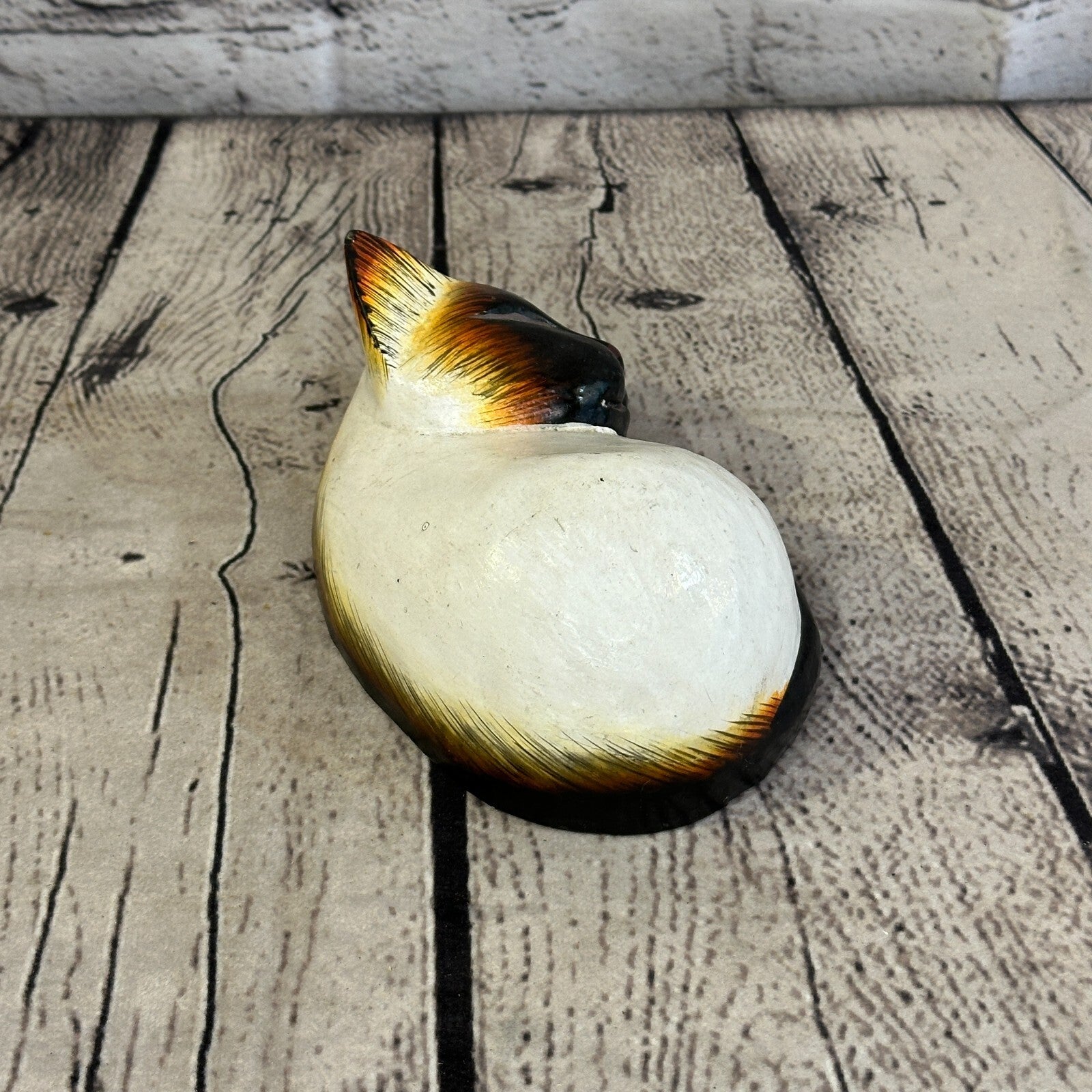14cm Siamese Style Painted Wooden Hand Carved Snoozing Cat Sleeping Cat Wooden