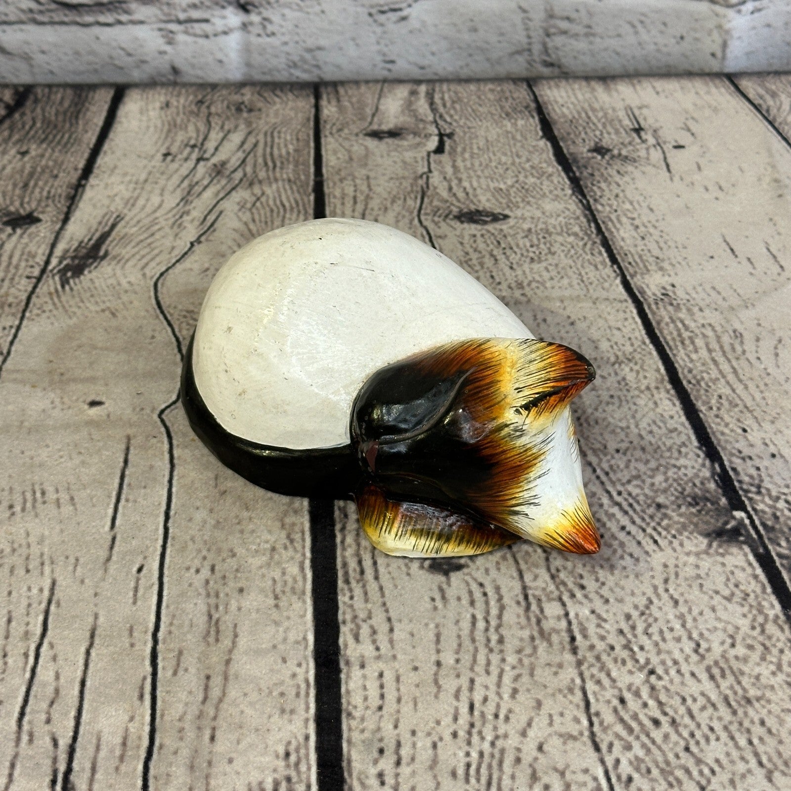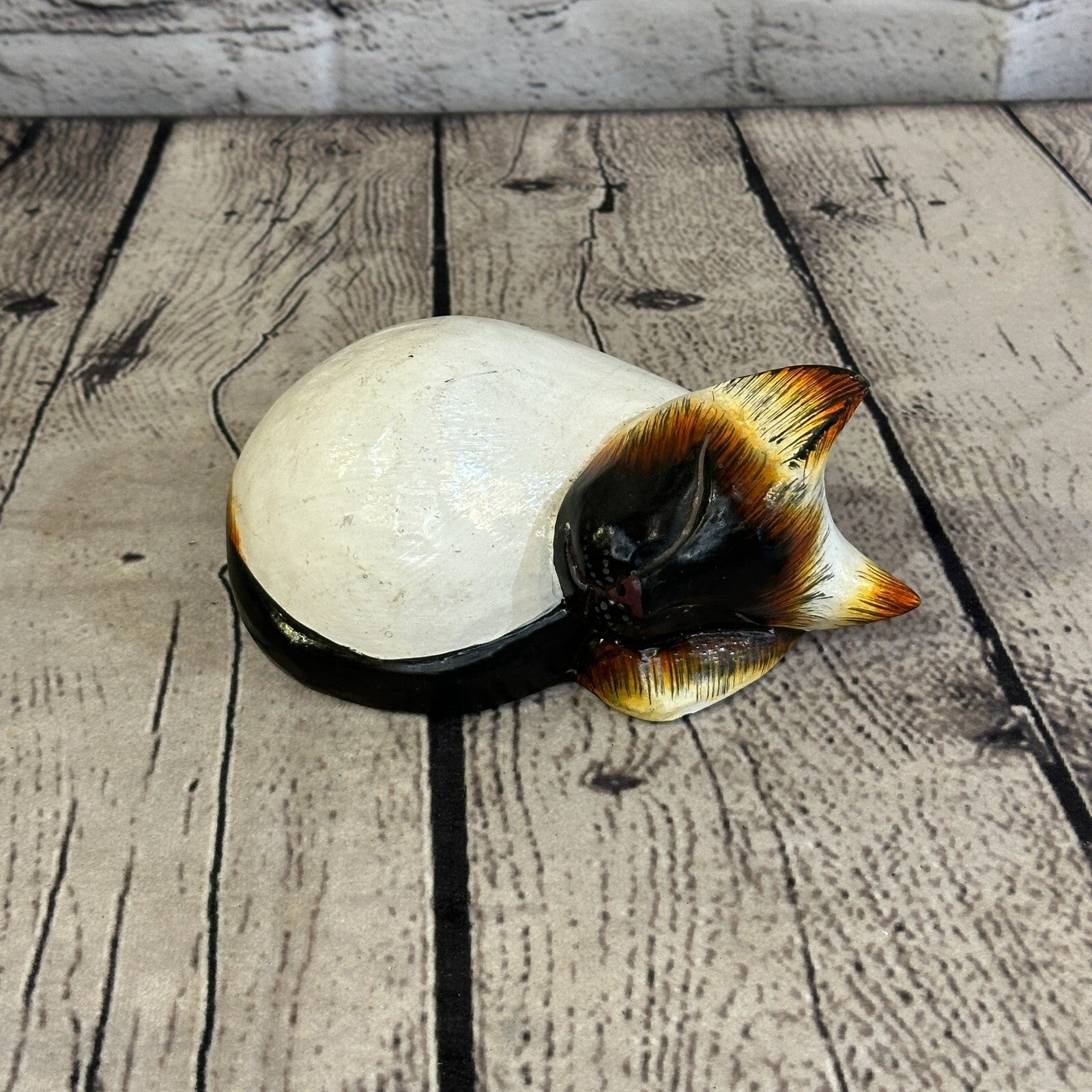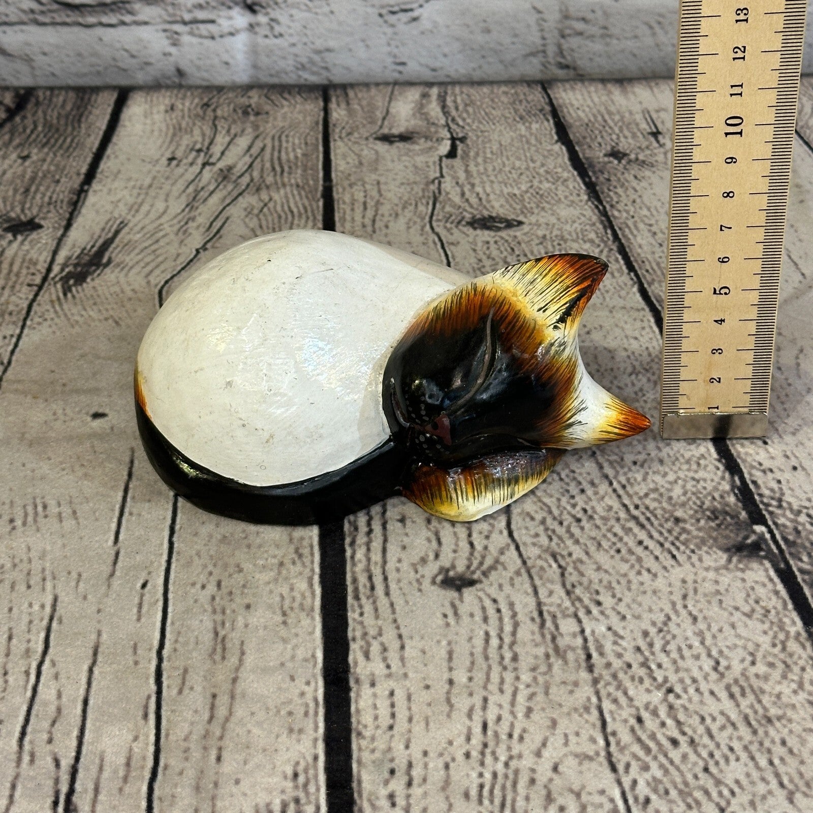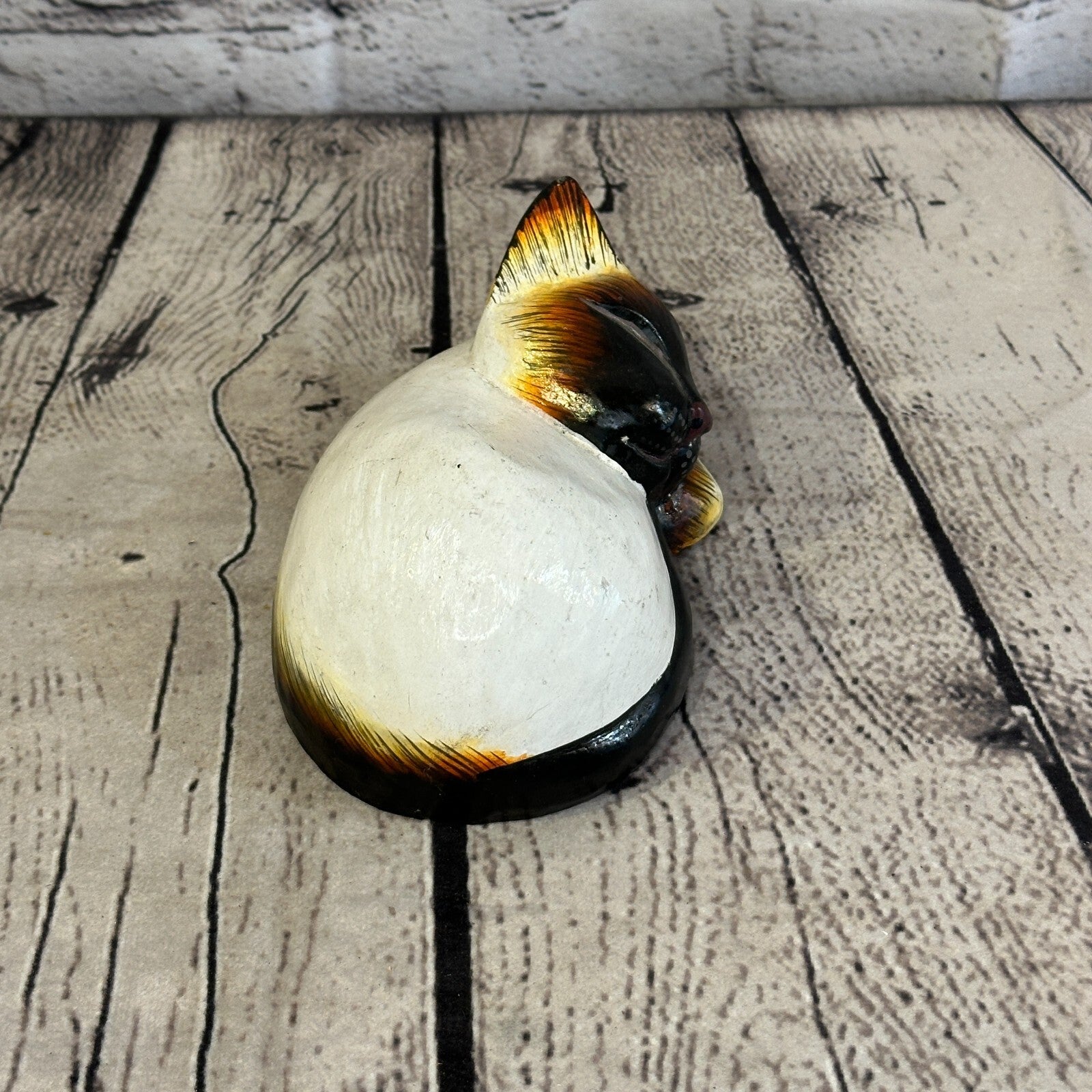 14cm Siamese Style Painted Wooden Hand Carved Snoozing Cat Sleeping Cat Wooden