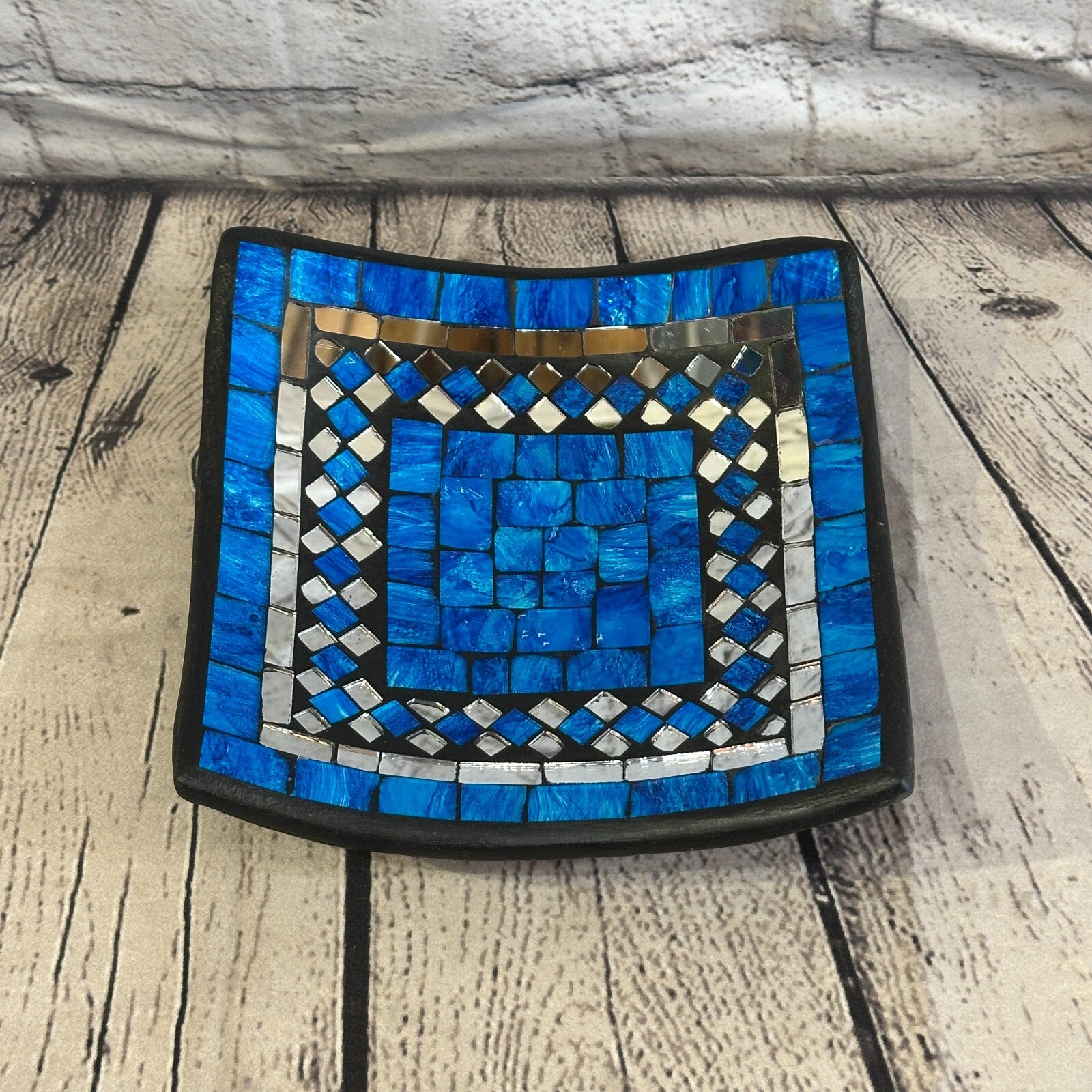 20cm Blue Square Mosaic Handmade Ceramic Glass Tile Bowl Fruit
