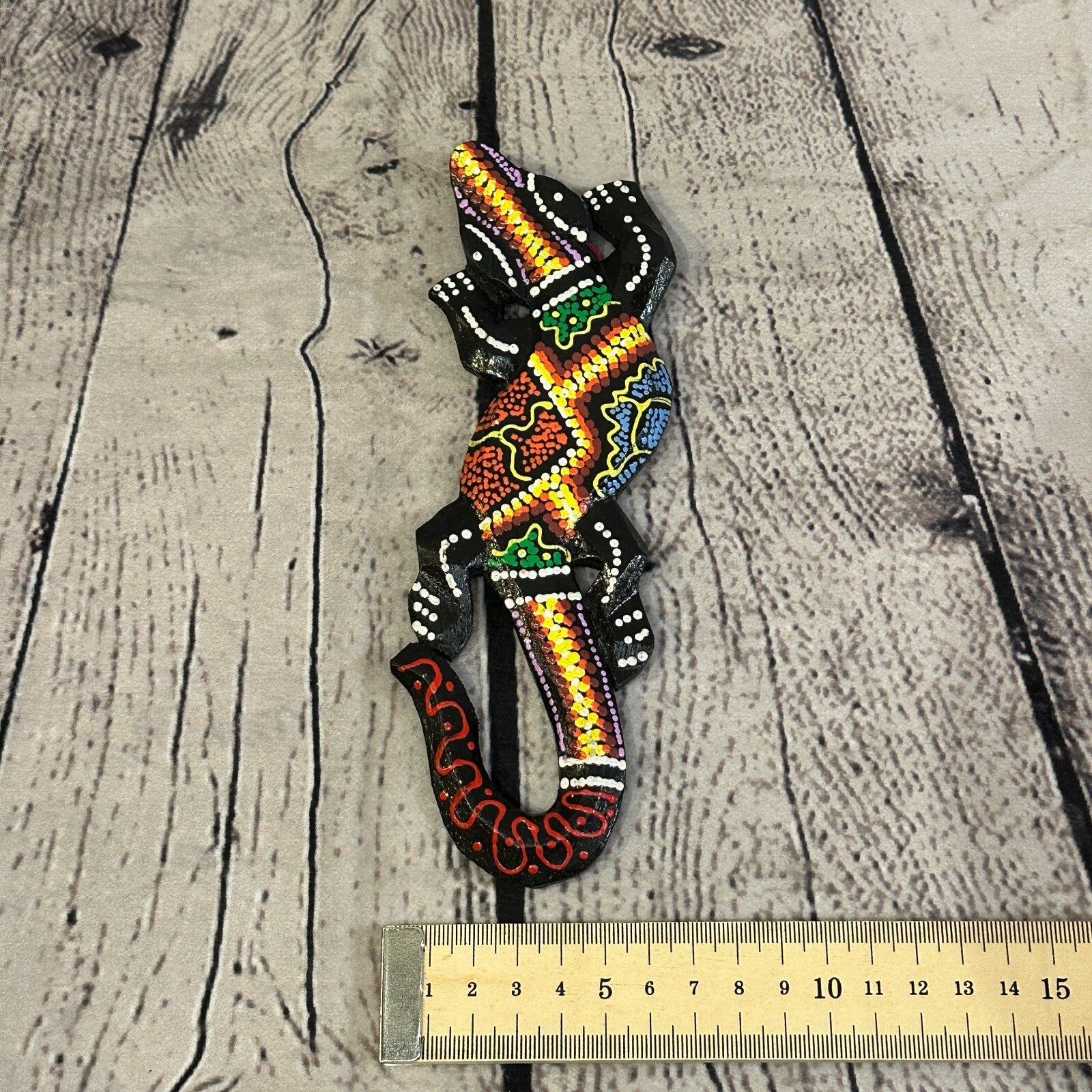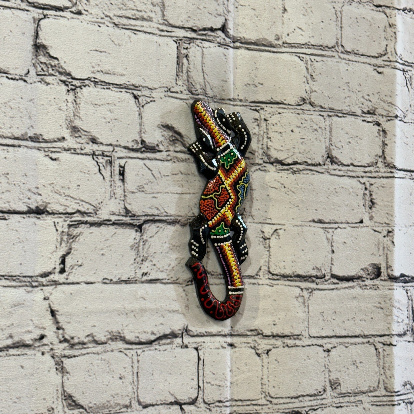 20cm Gecko Carved Wooden Dot Painted Ethnic Tribal Tiki Wall Handmade No 12