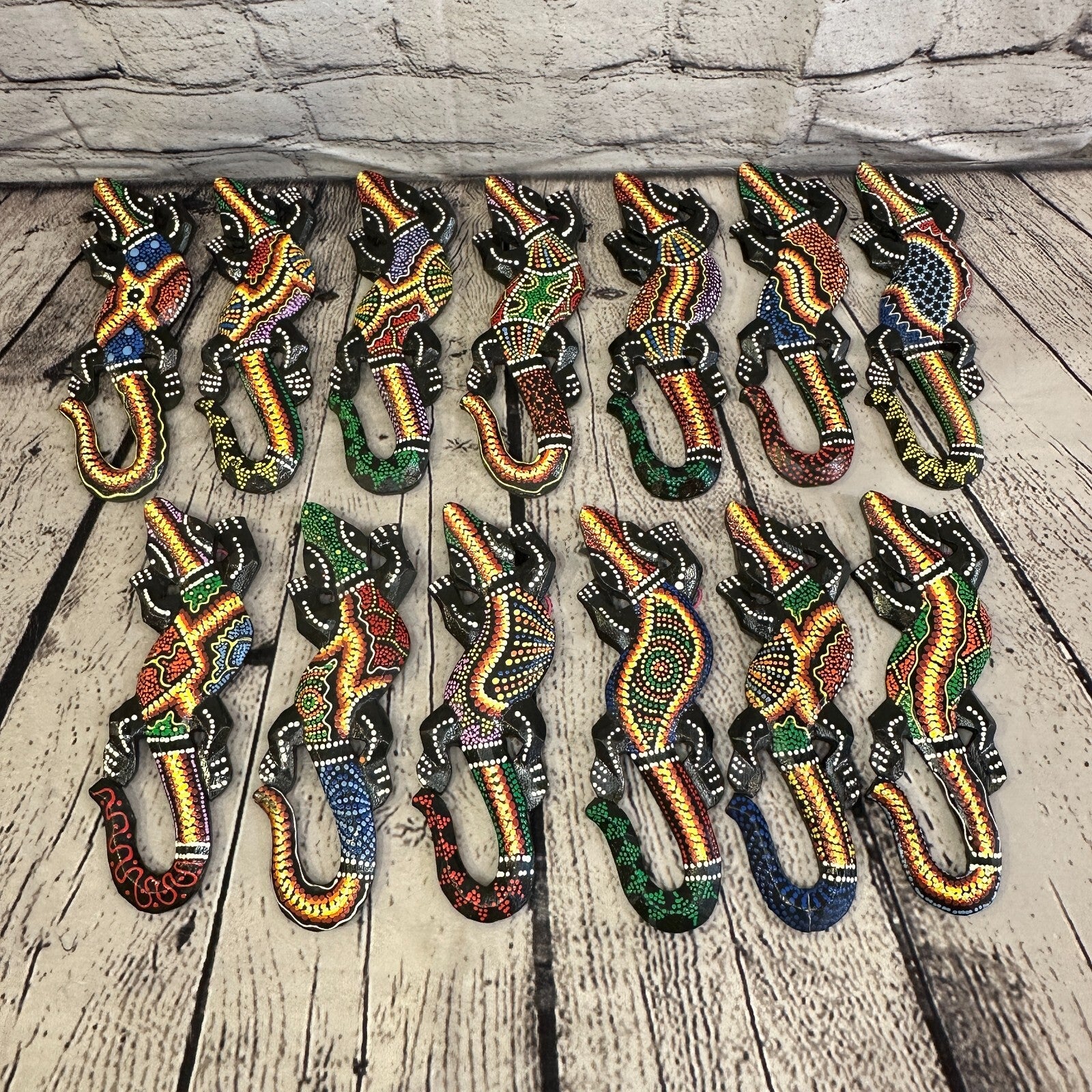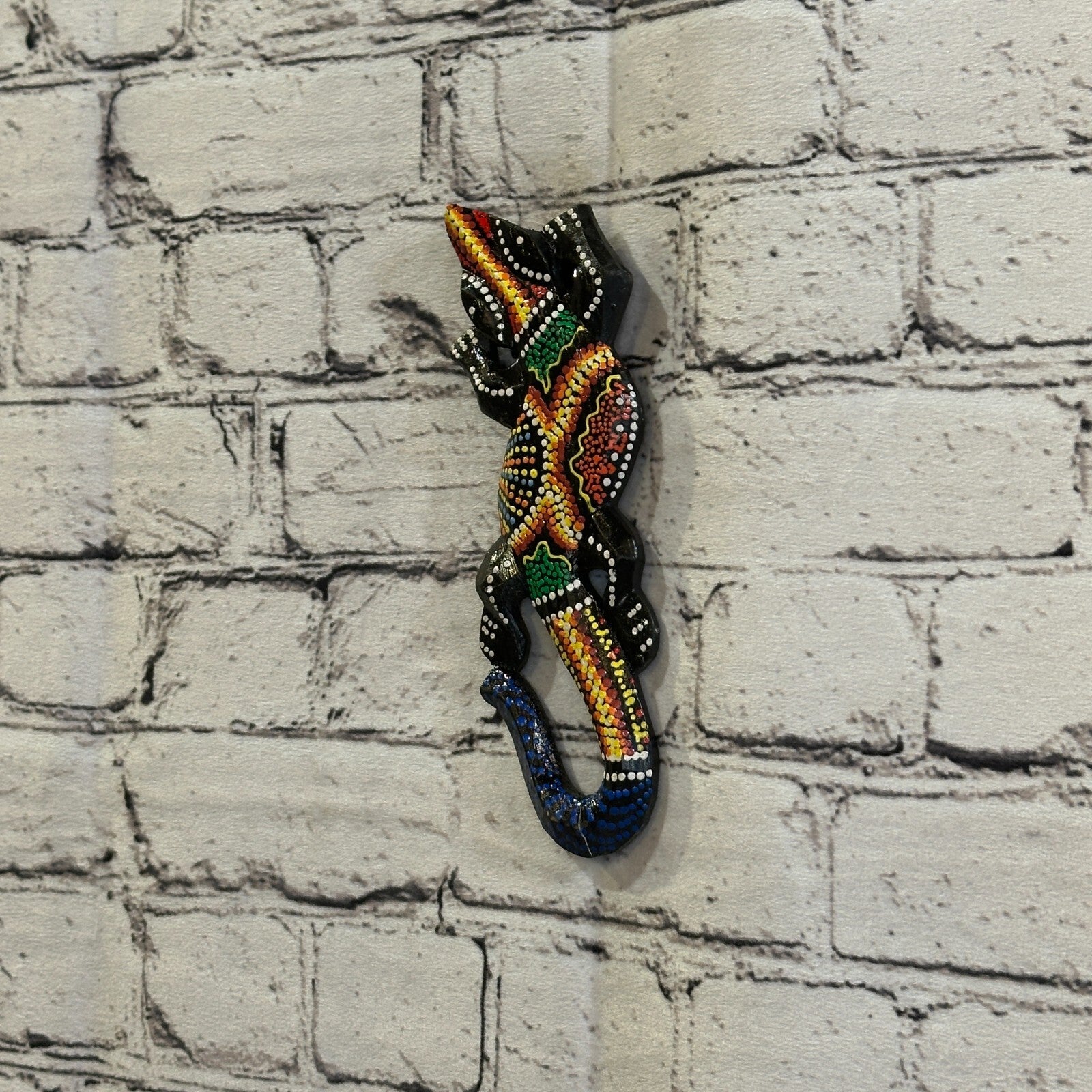 20cm Gecko Carved Wooden Dot Painted Ethnic Tribal Tiki Wall Handmade No 4