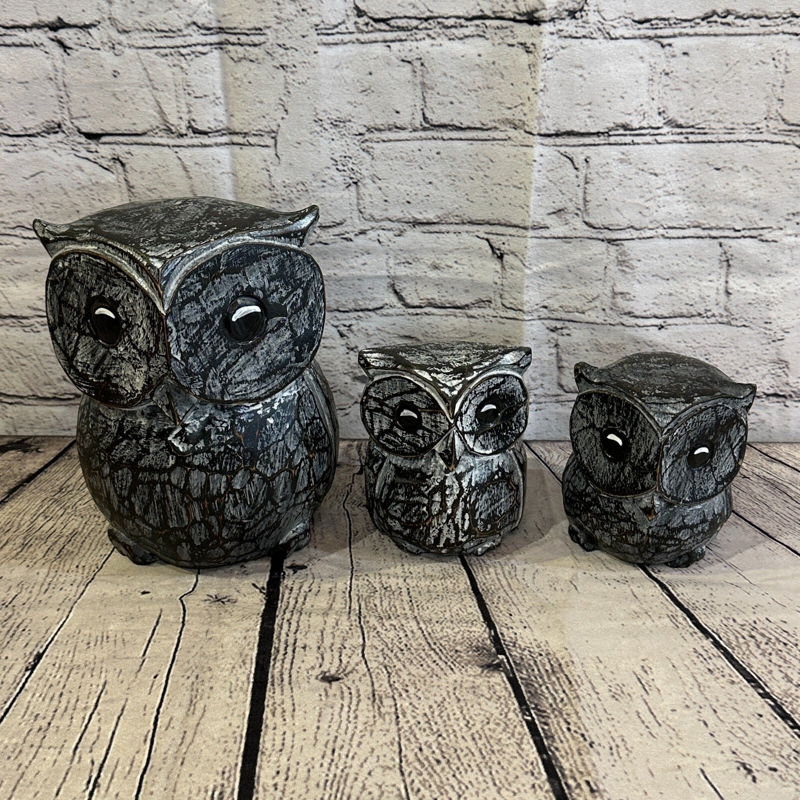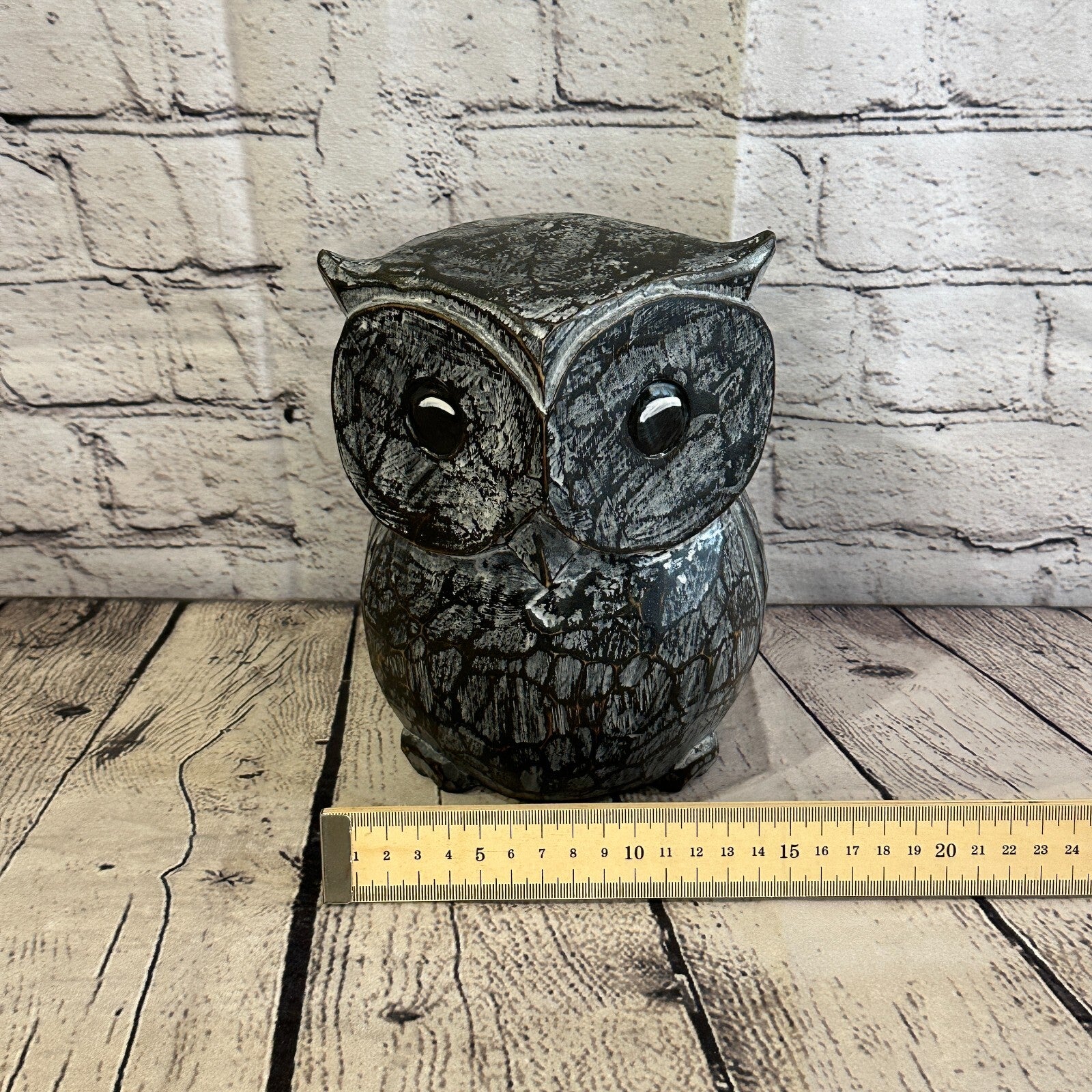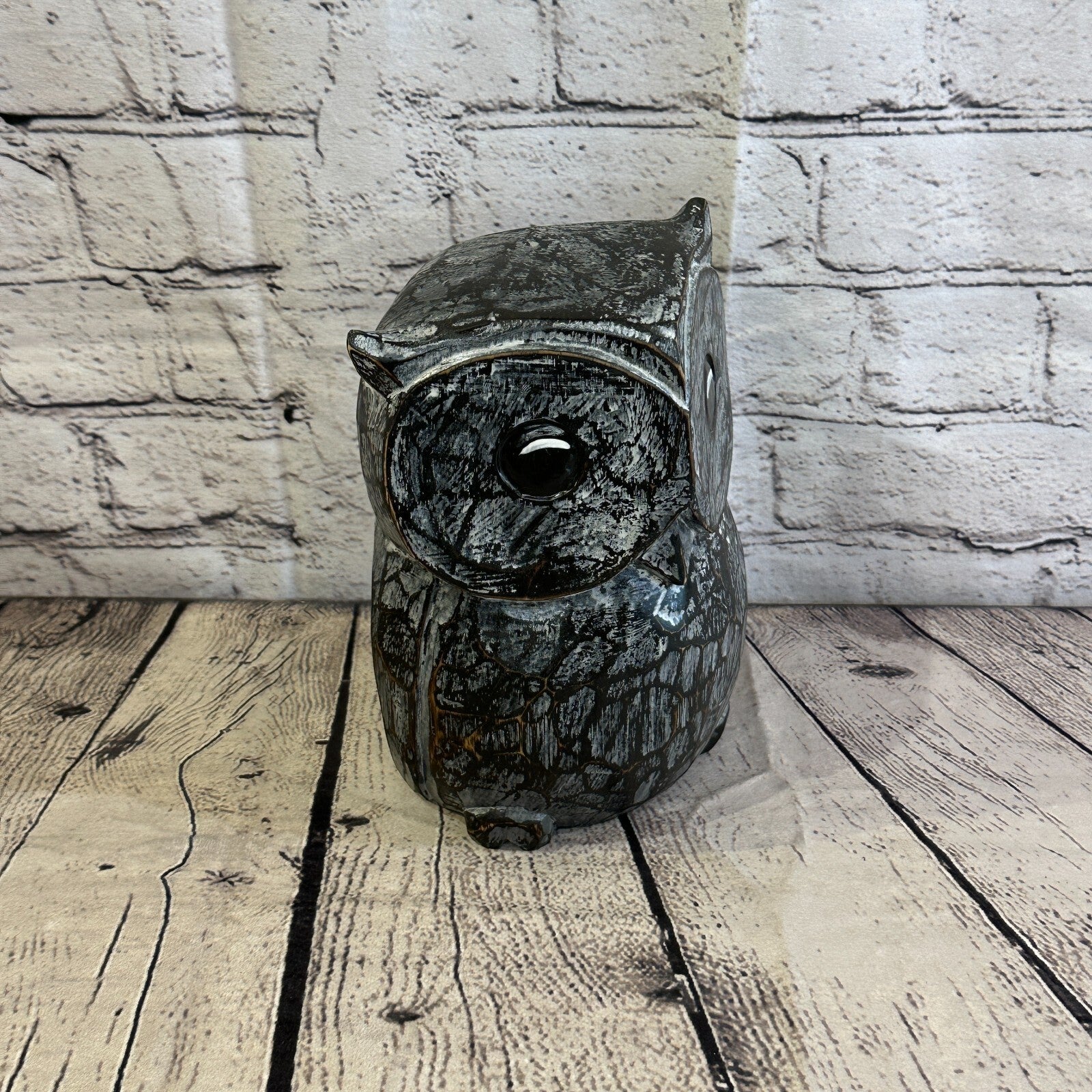 20cm x 15cm Black Flower Wooden Shabby Owl Statue Ornament Fair Trade Handcarved