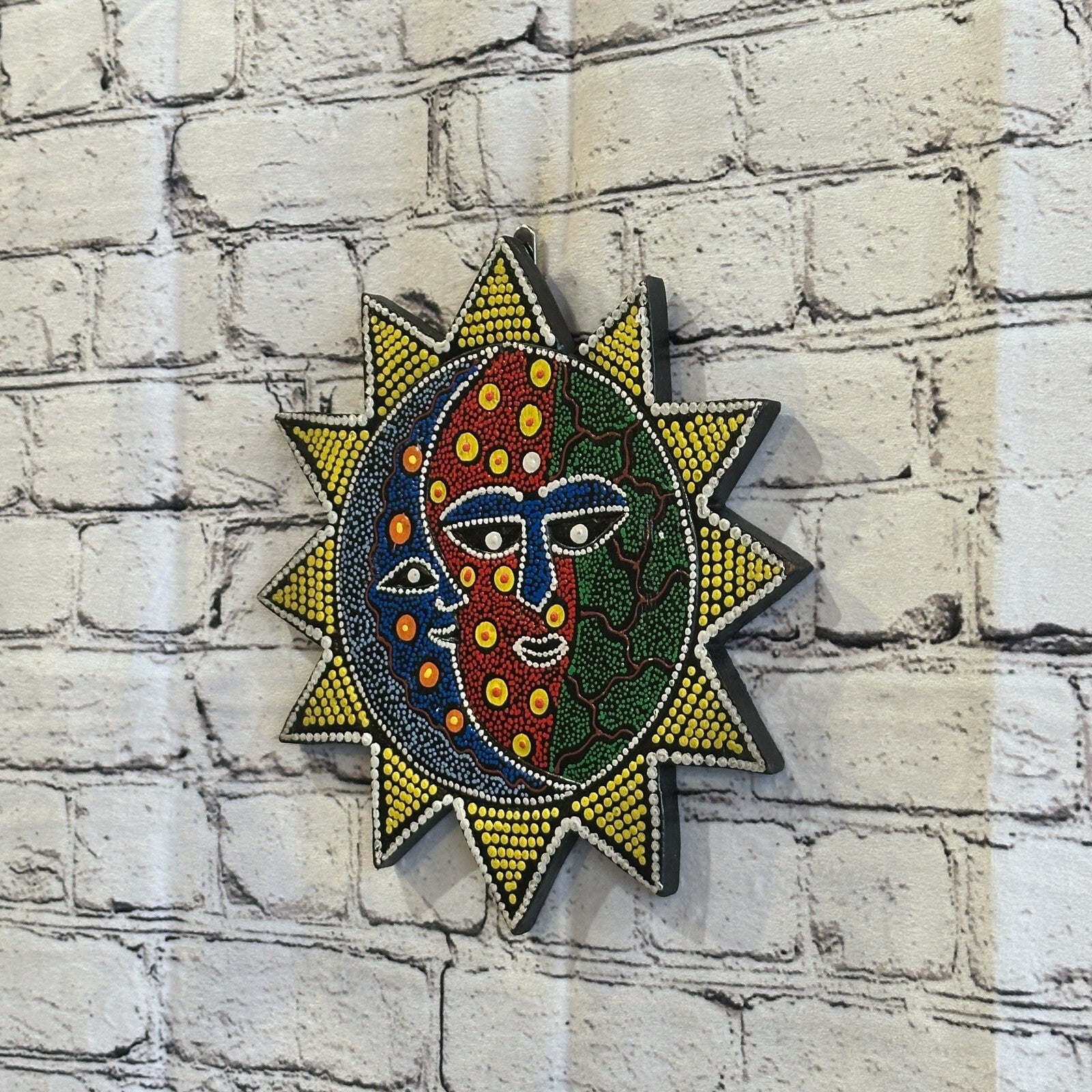 25cm Sun & Moon Carved Wooden Dot Painted Ethnic Tribal Tiki Wall Handmade No 1