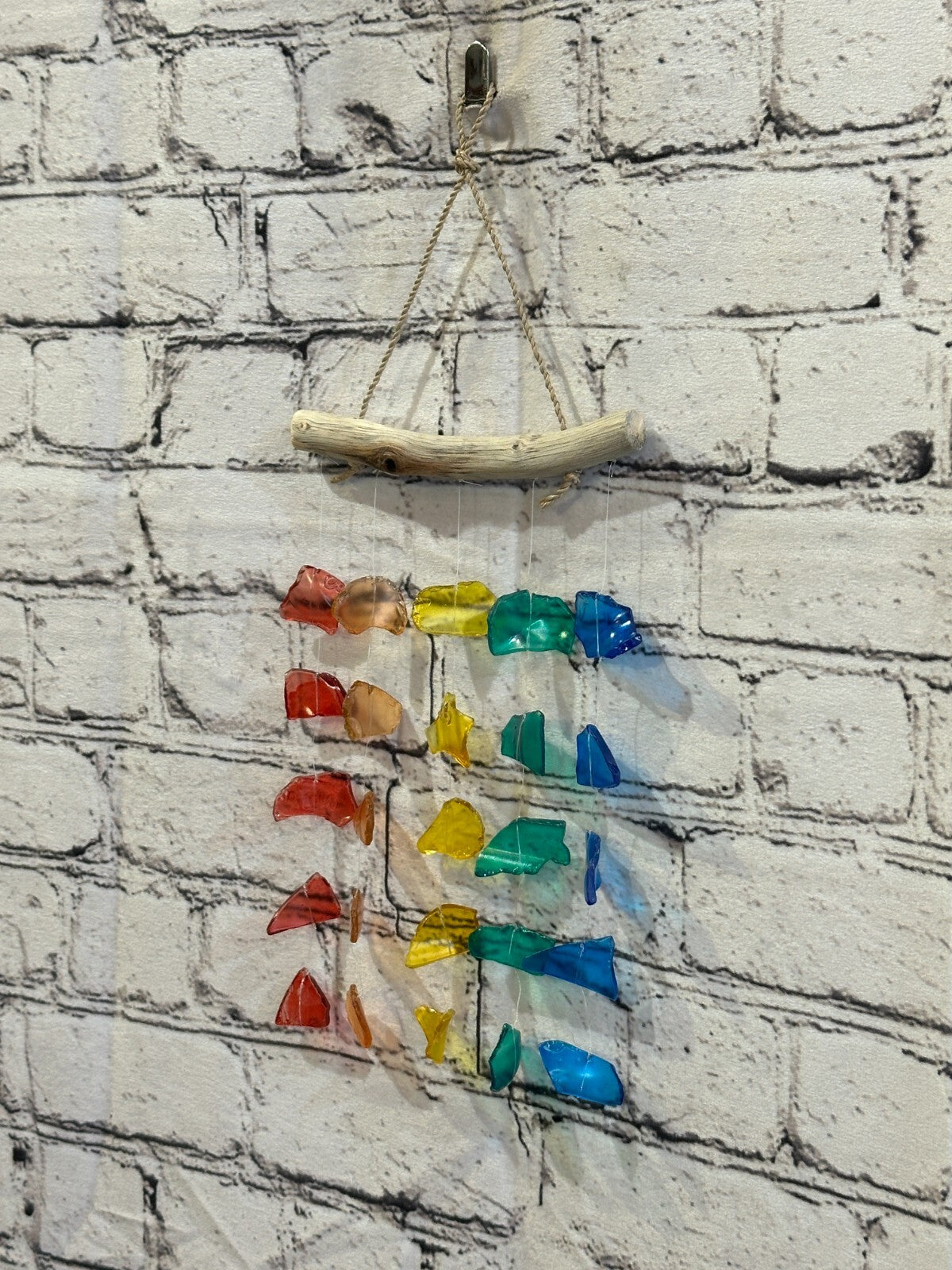 25cm x 15cm Rainbow Wind Recycled Glass Driftwood Handmade Garden Home Mobile
