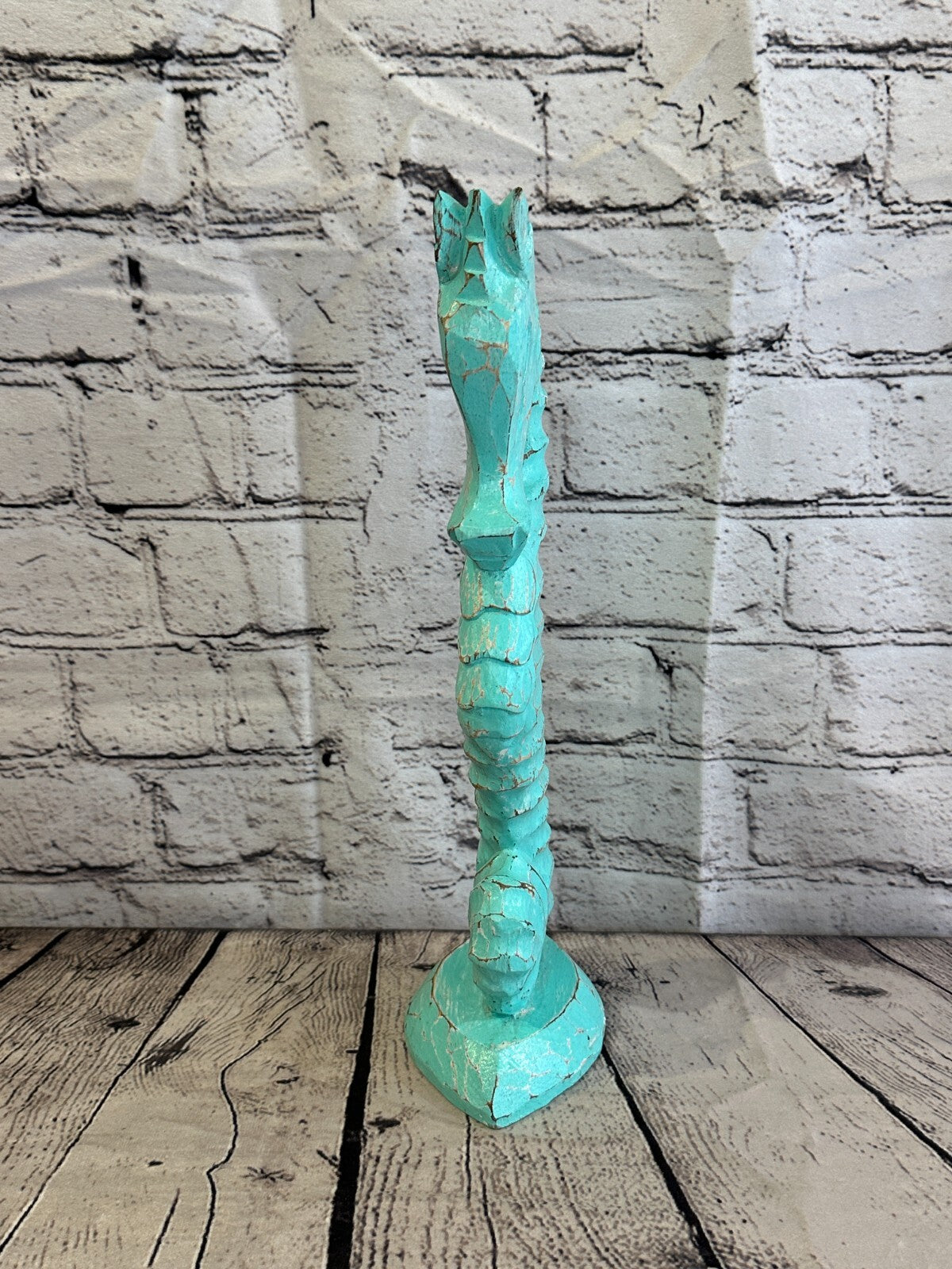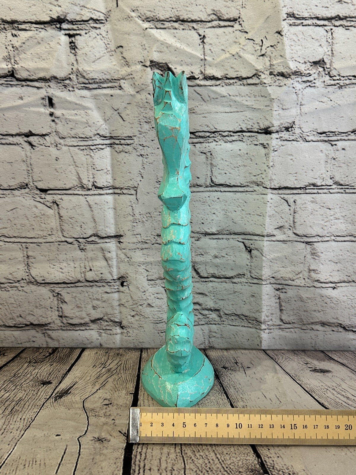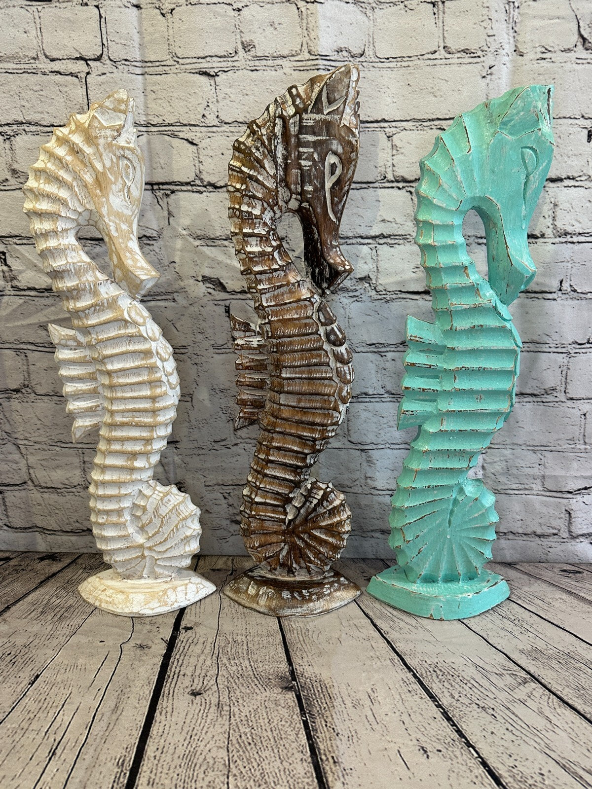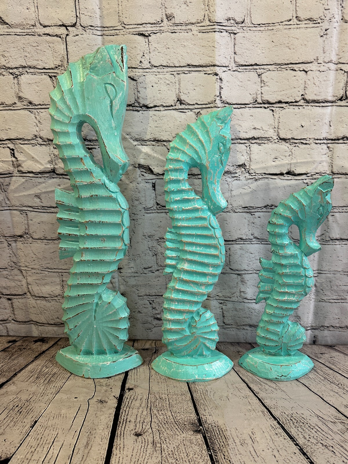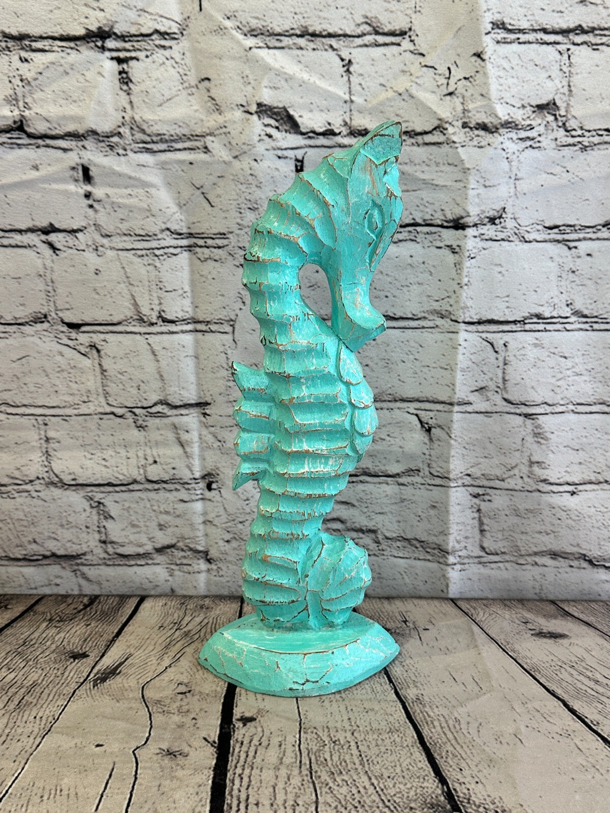 30cm Green Plain Wooden Shabby Seahorse Statue Ornament Fair Trade Handcarved