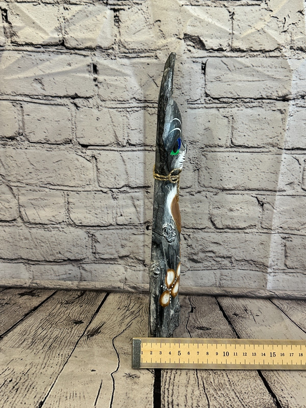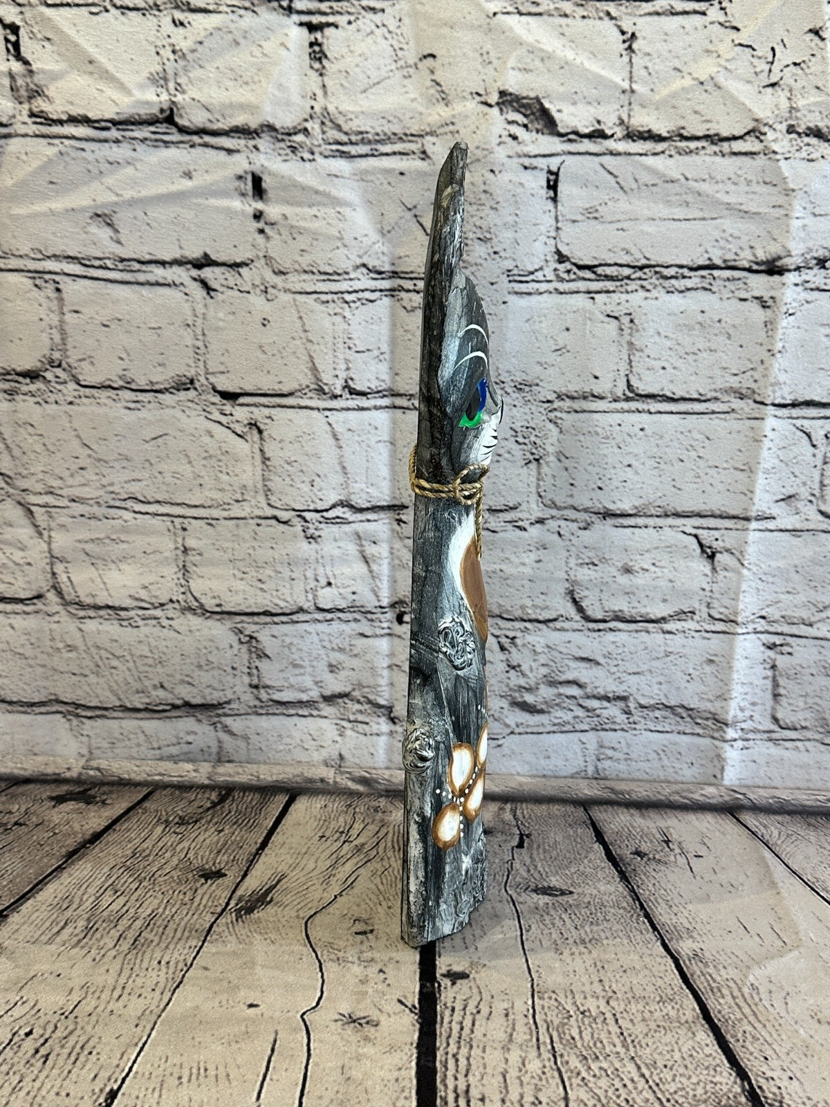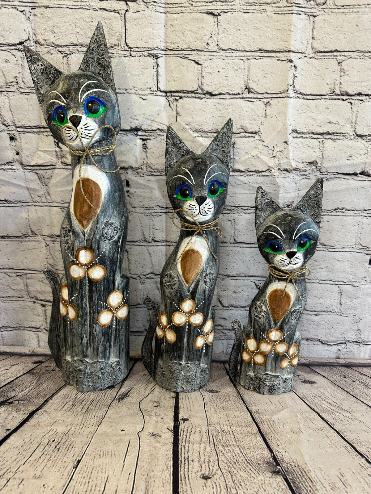 30cm Grey Swirl Flower Wooden Shabby Cat Statue Ornament Fair Trade Handcarved