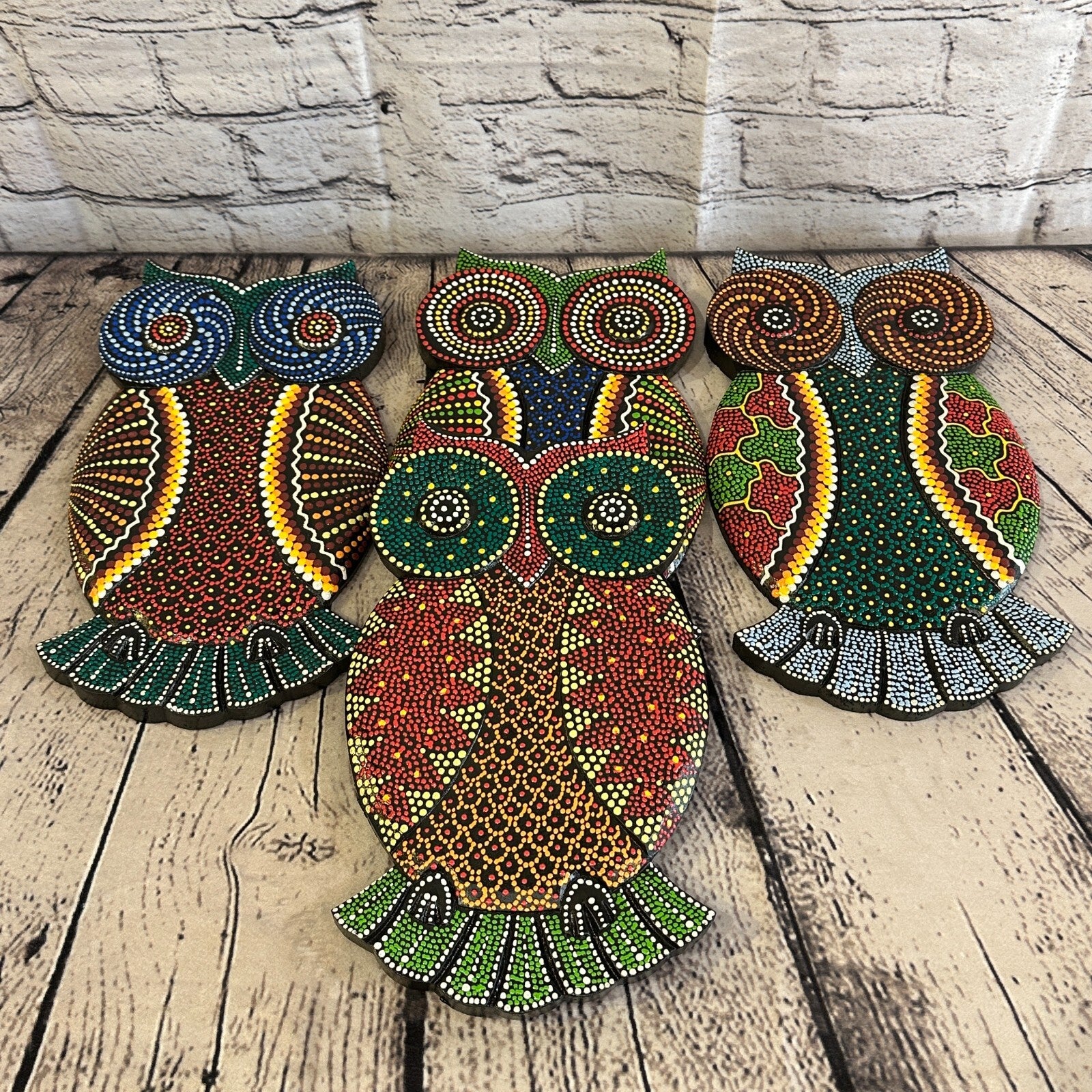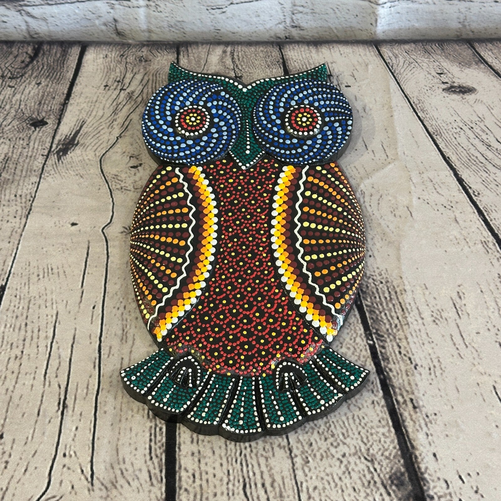 30cm Owl Carved Wooden Dot Painted Ethnic Tribal Tiki Wall Art Handmade No 1