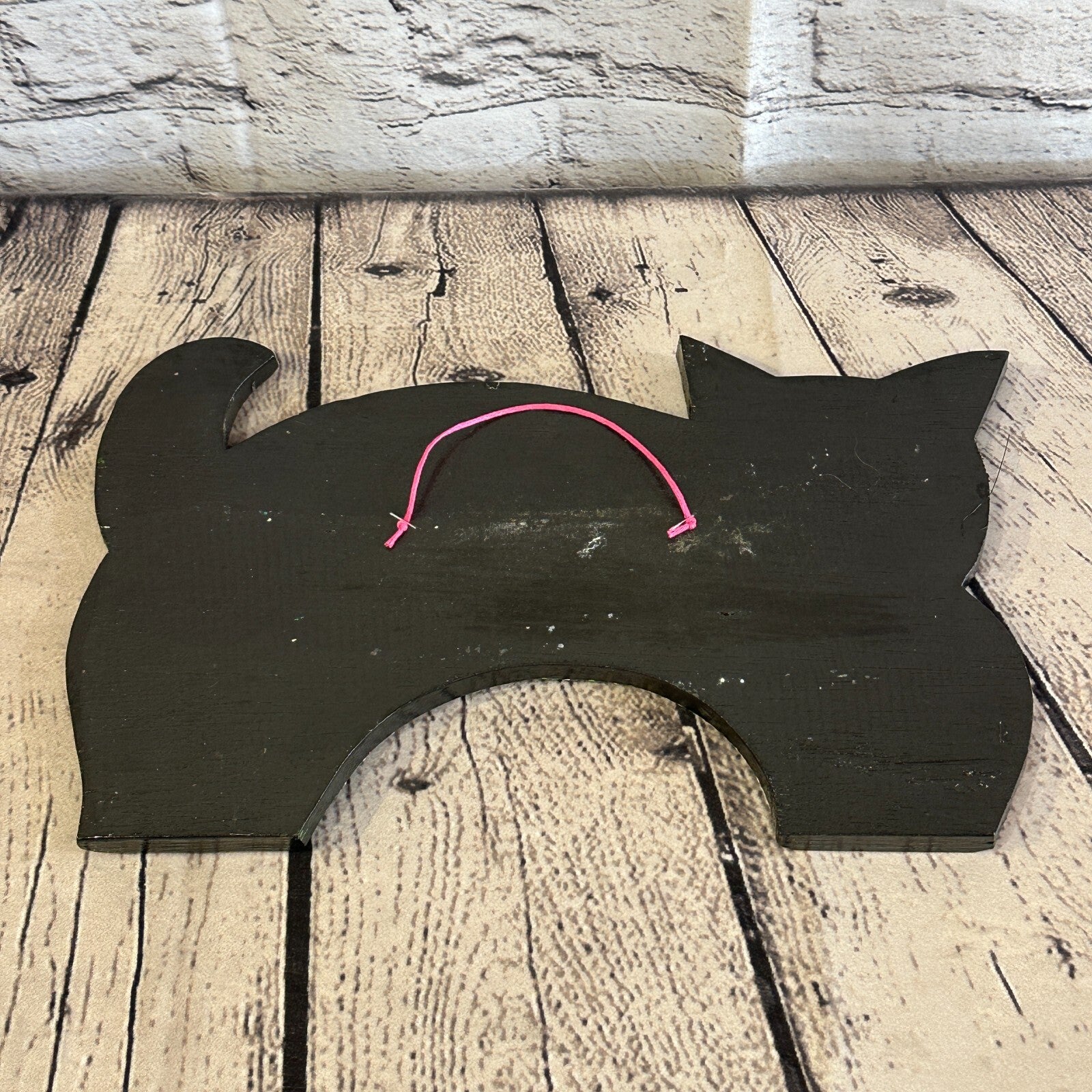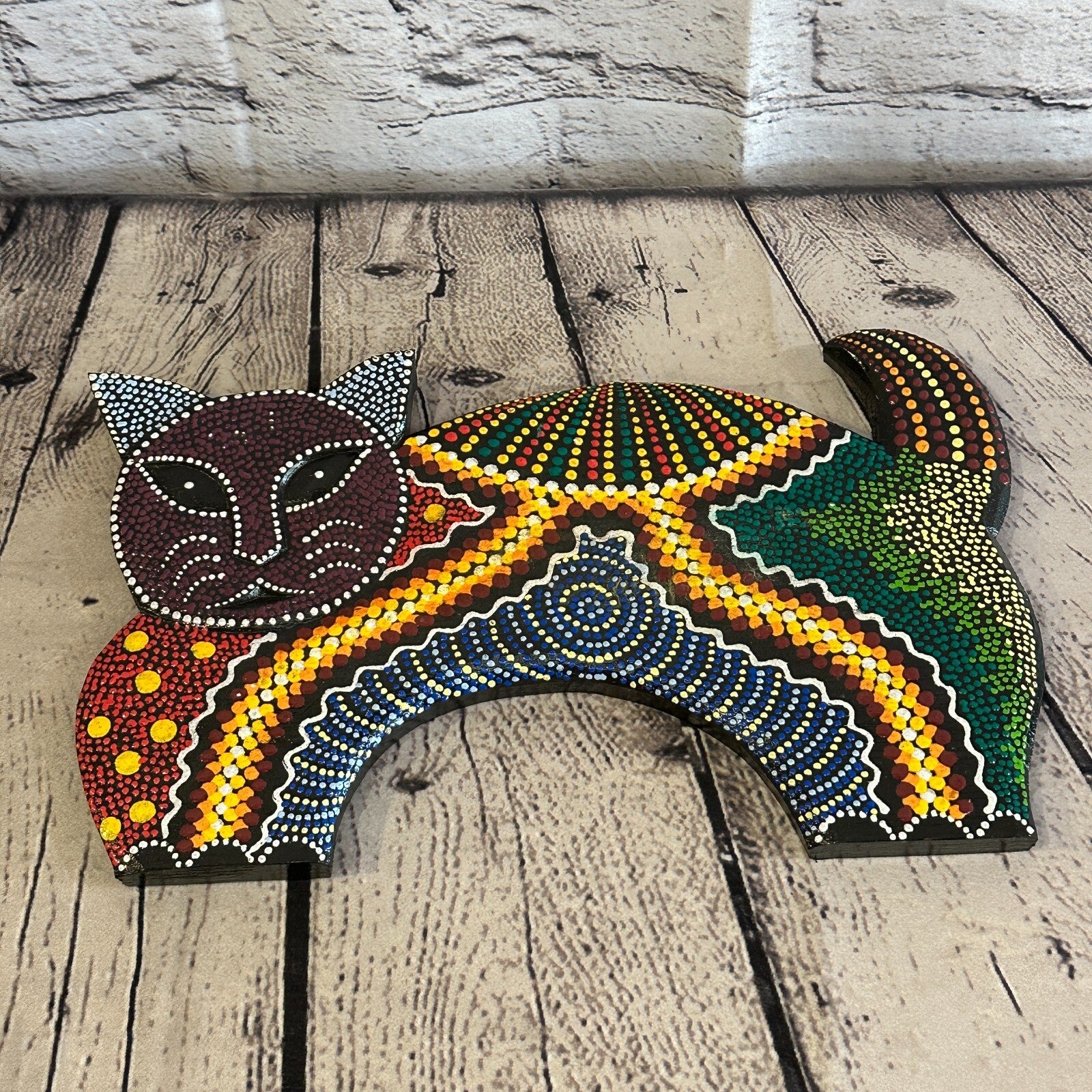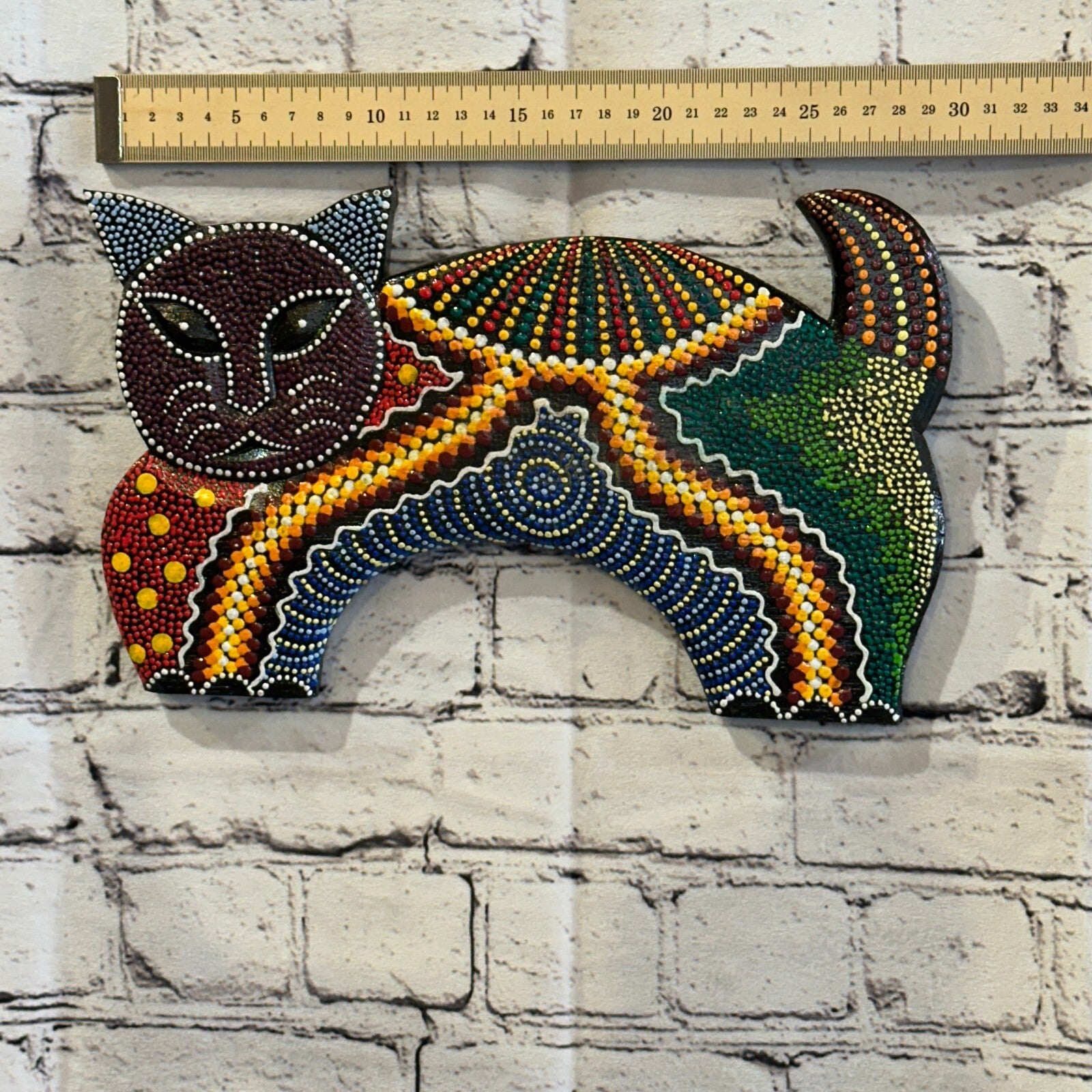 30cm Purple Cat Carved Wooden Dot Painted Ethnic Tribal Tiki Wall Art Handmade