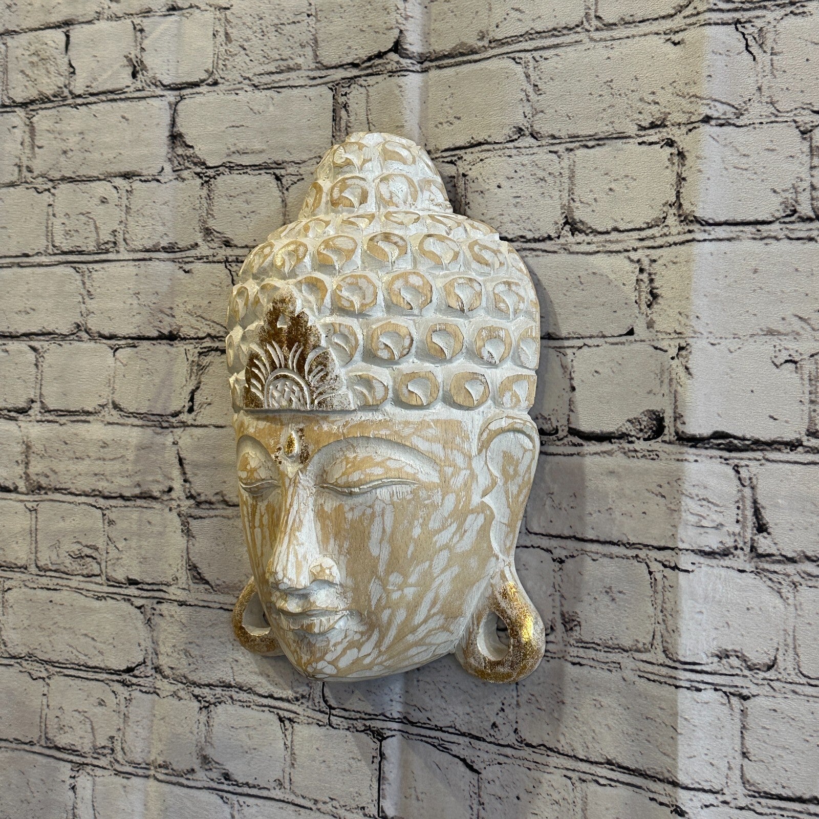 30cm x 20cm Light Brown Buddha Head Mask Wooden Hanging Statue Figurine Ornament