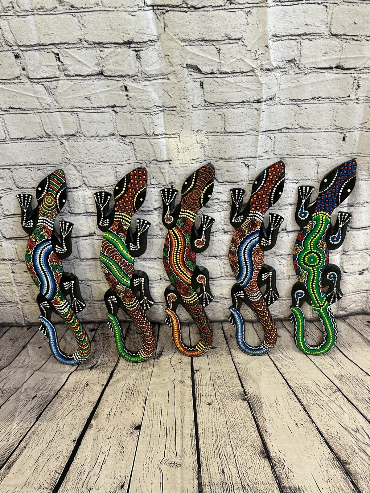 50cm Gecko Carved Wooden Dot Painted Ethnic Tribal Tiki Wall Handmade No 1