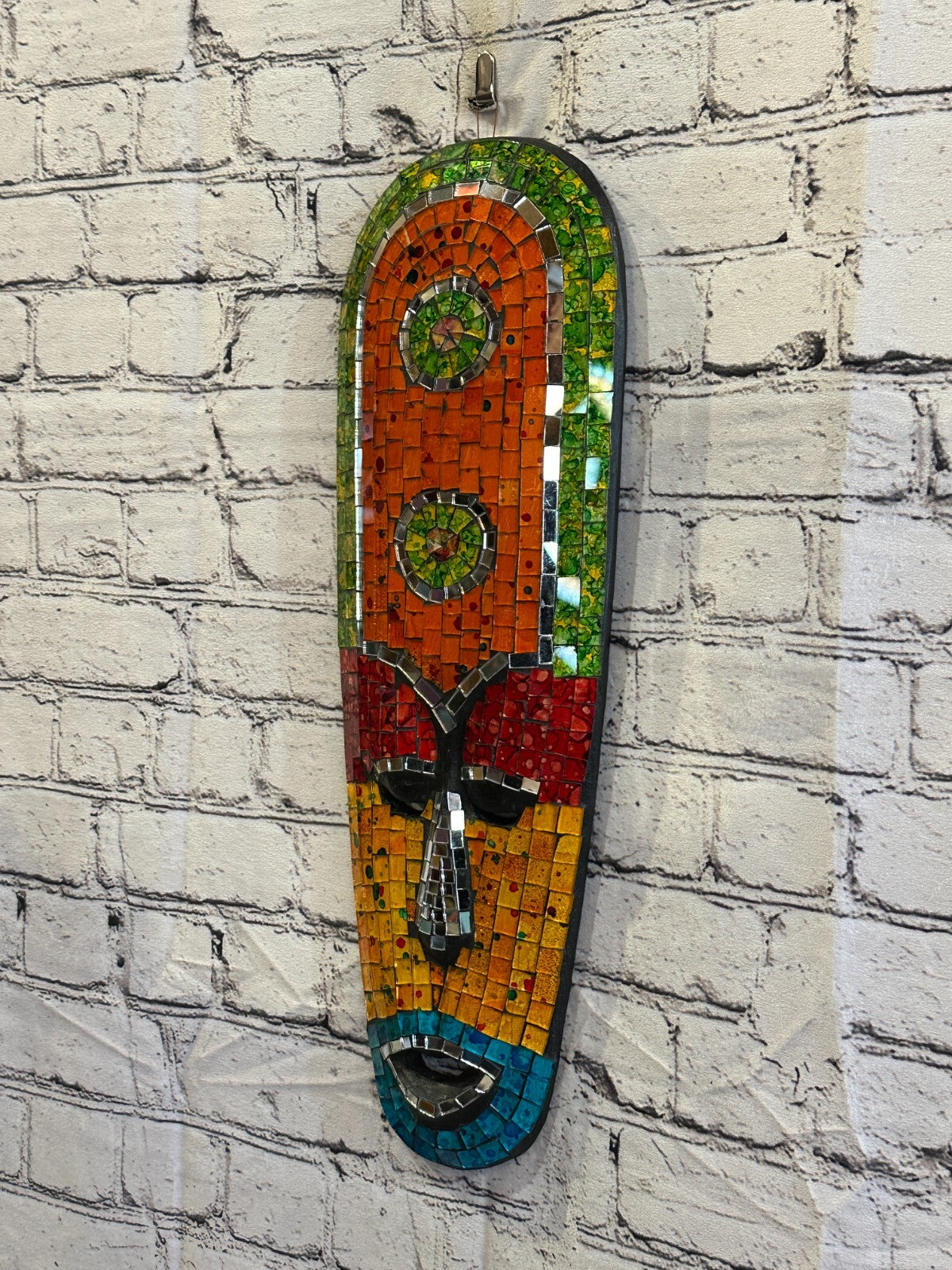 50cm Mosaic Mirror Mask Carved Painted Ethnic Tribal Wall Art Handmade Design 1