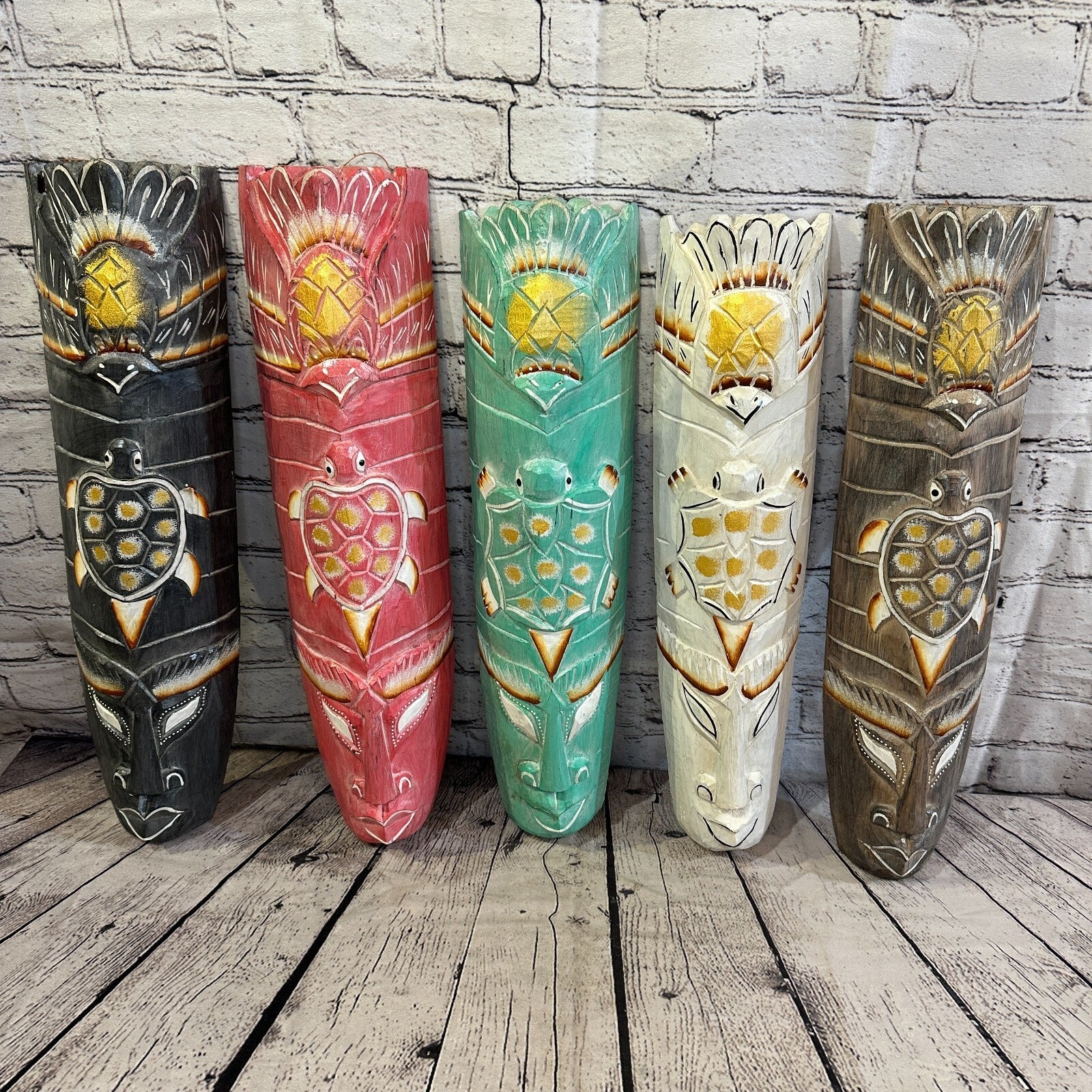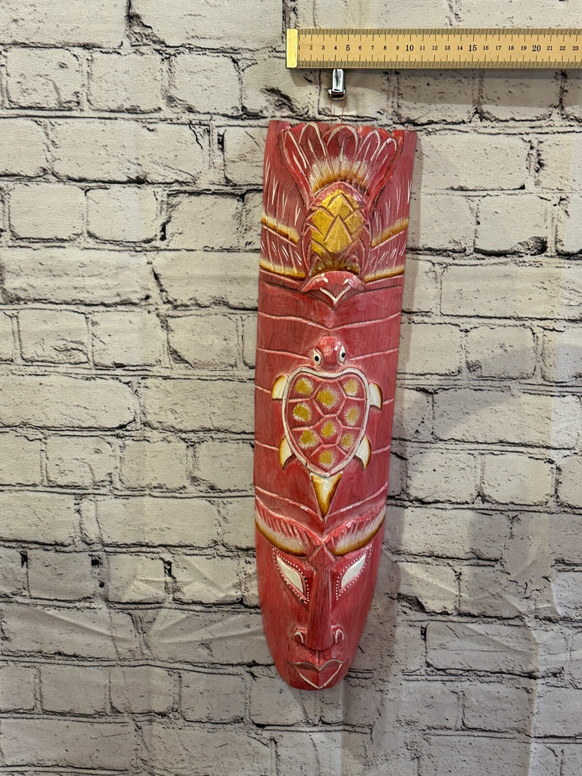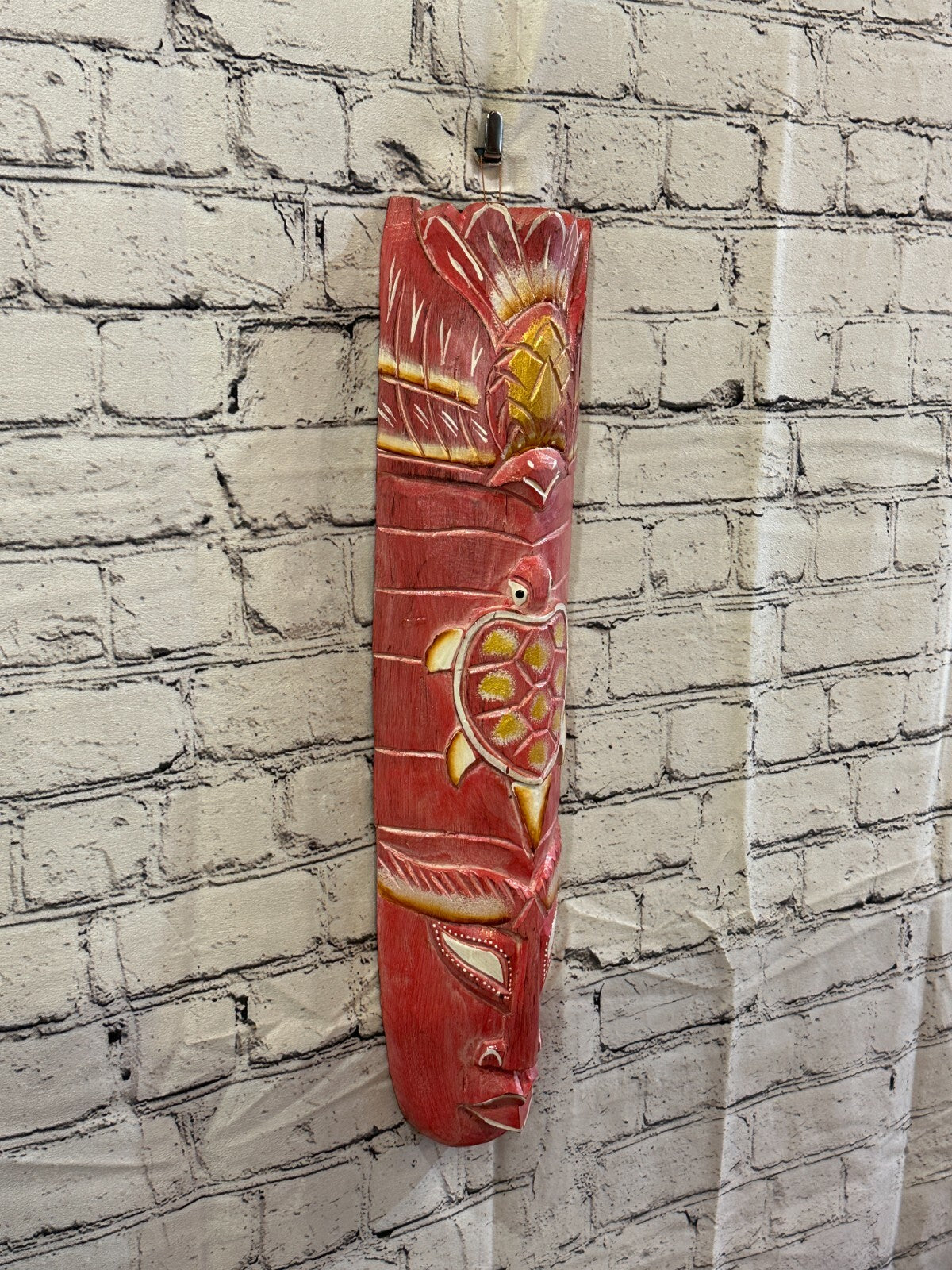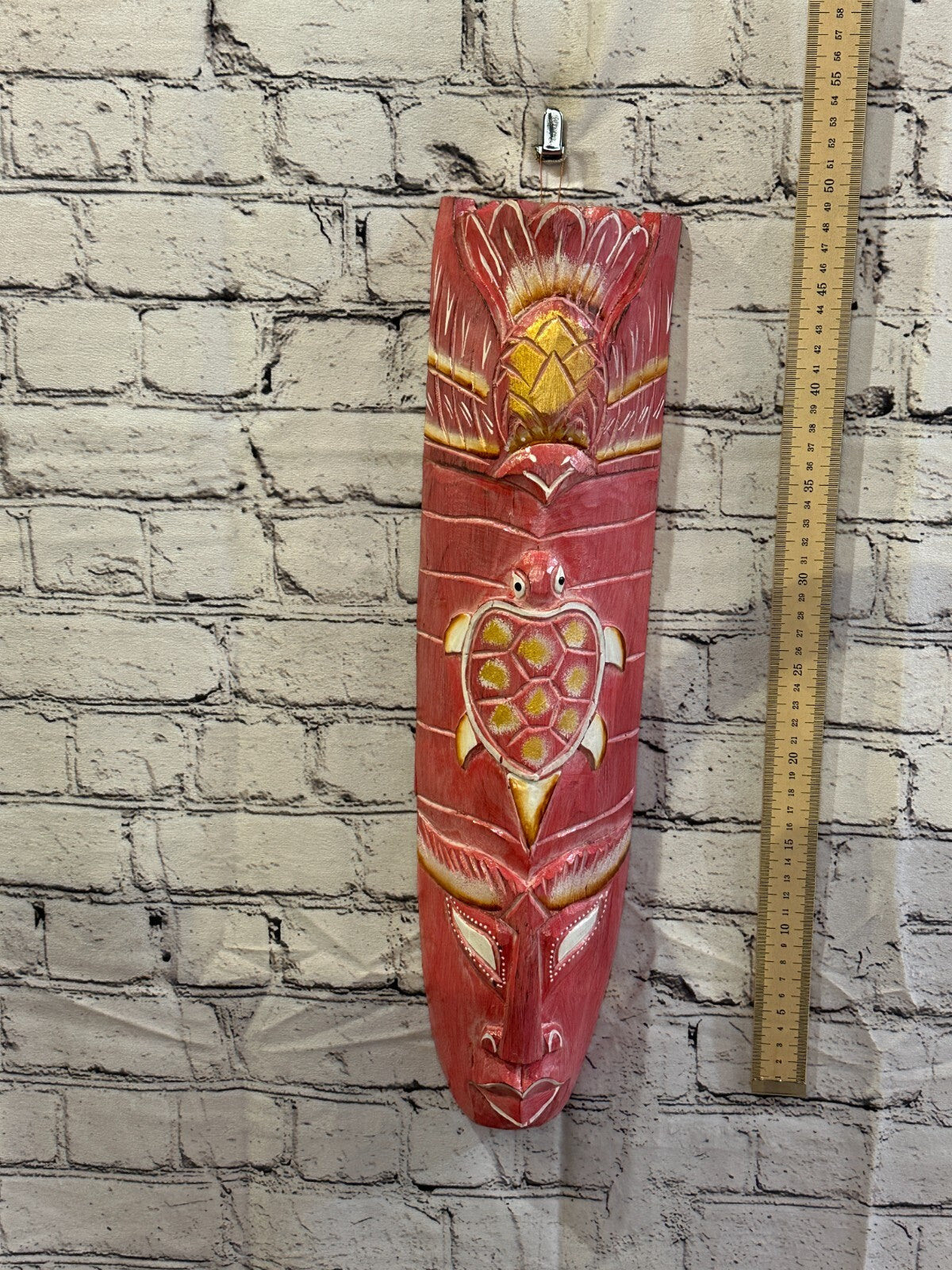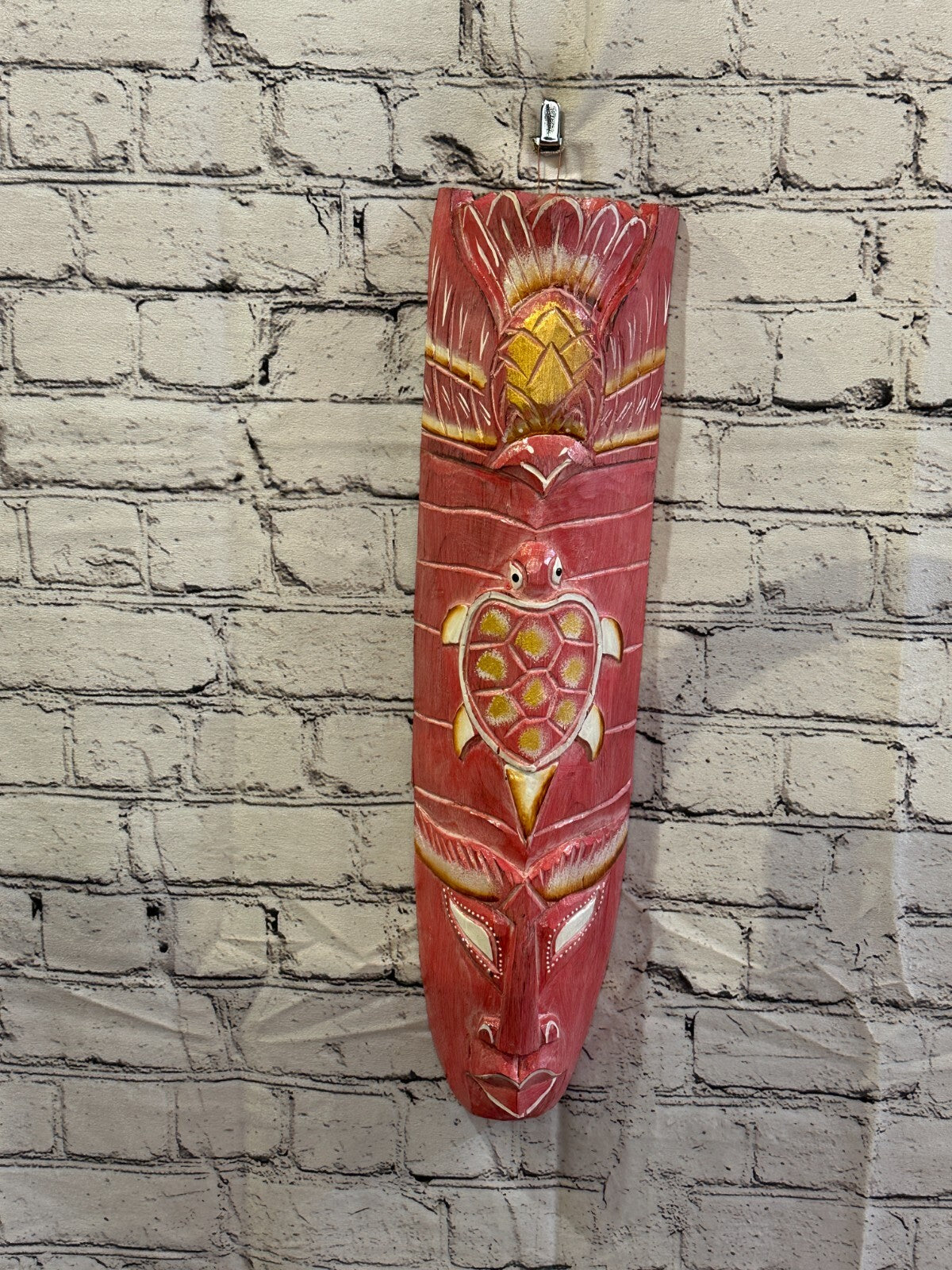50cm Pink Turtle Hand Carved Fair Trade Wooden Animal Wall Art Hang Mask