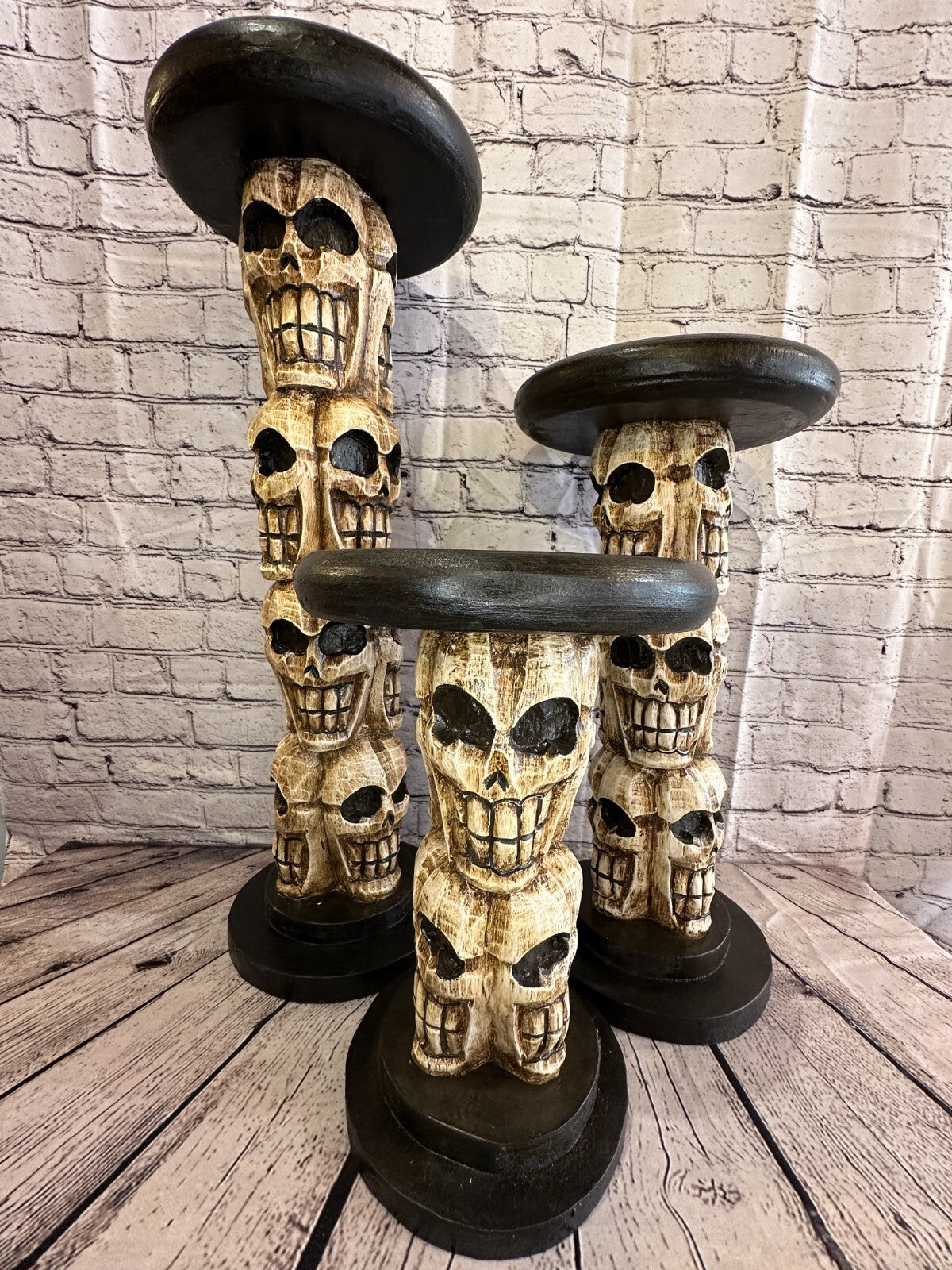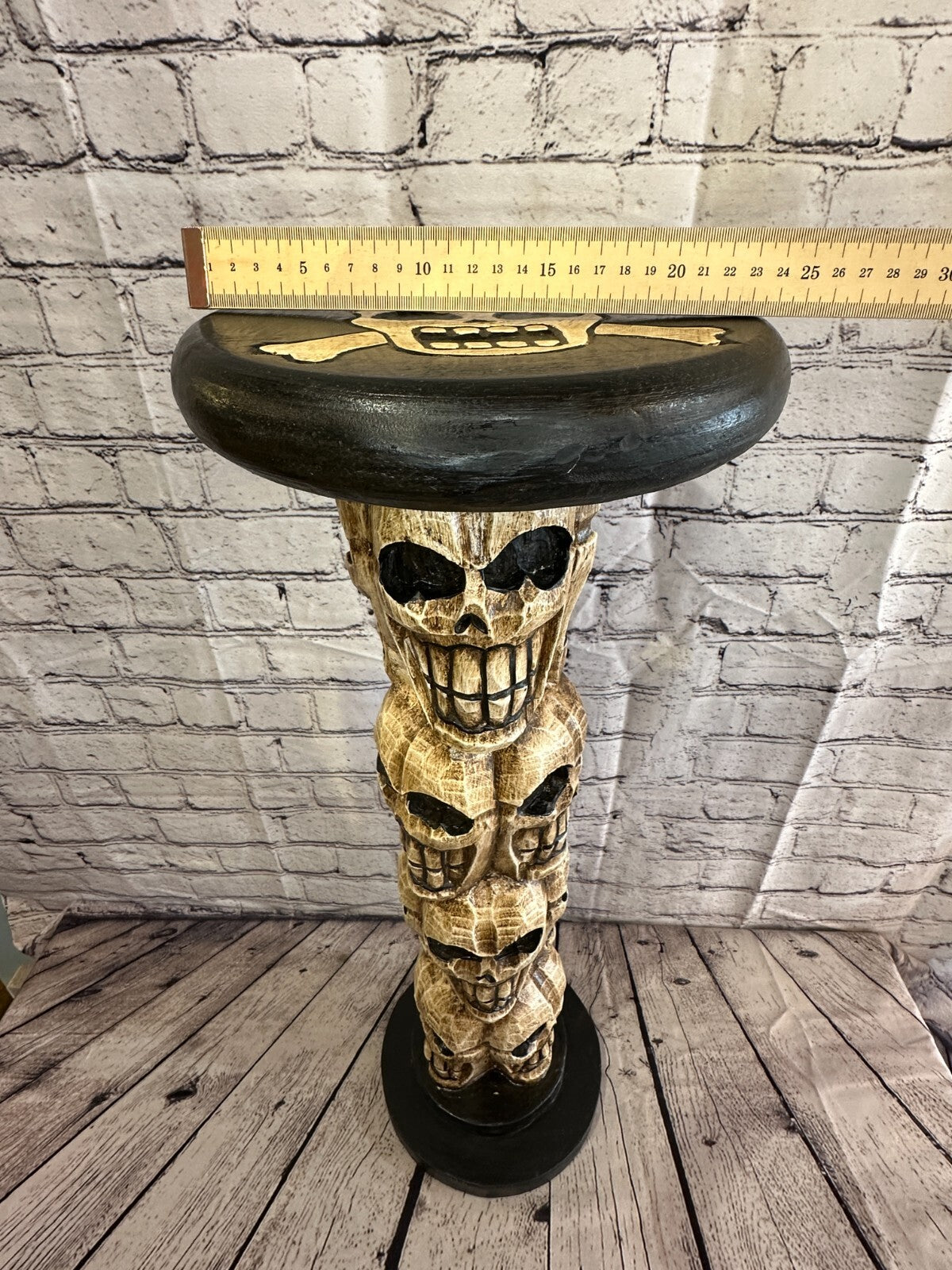 50cm Skull Tower Wood Side Table Bone Skull Flower Stand Solid Wood Gothic New