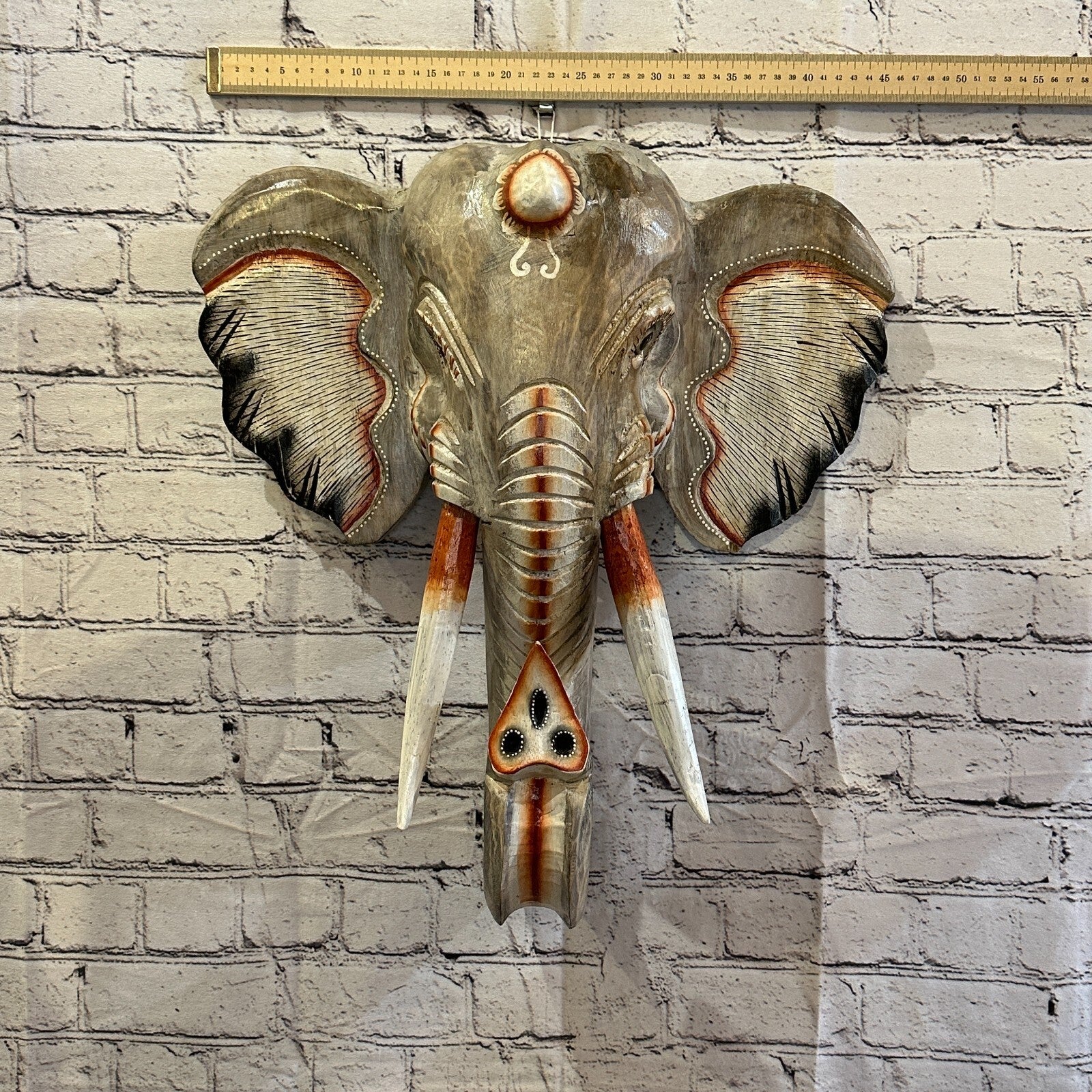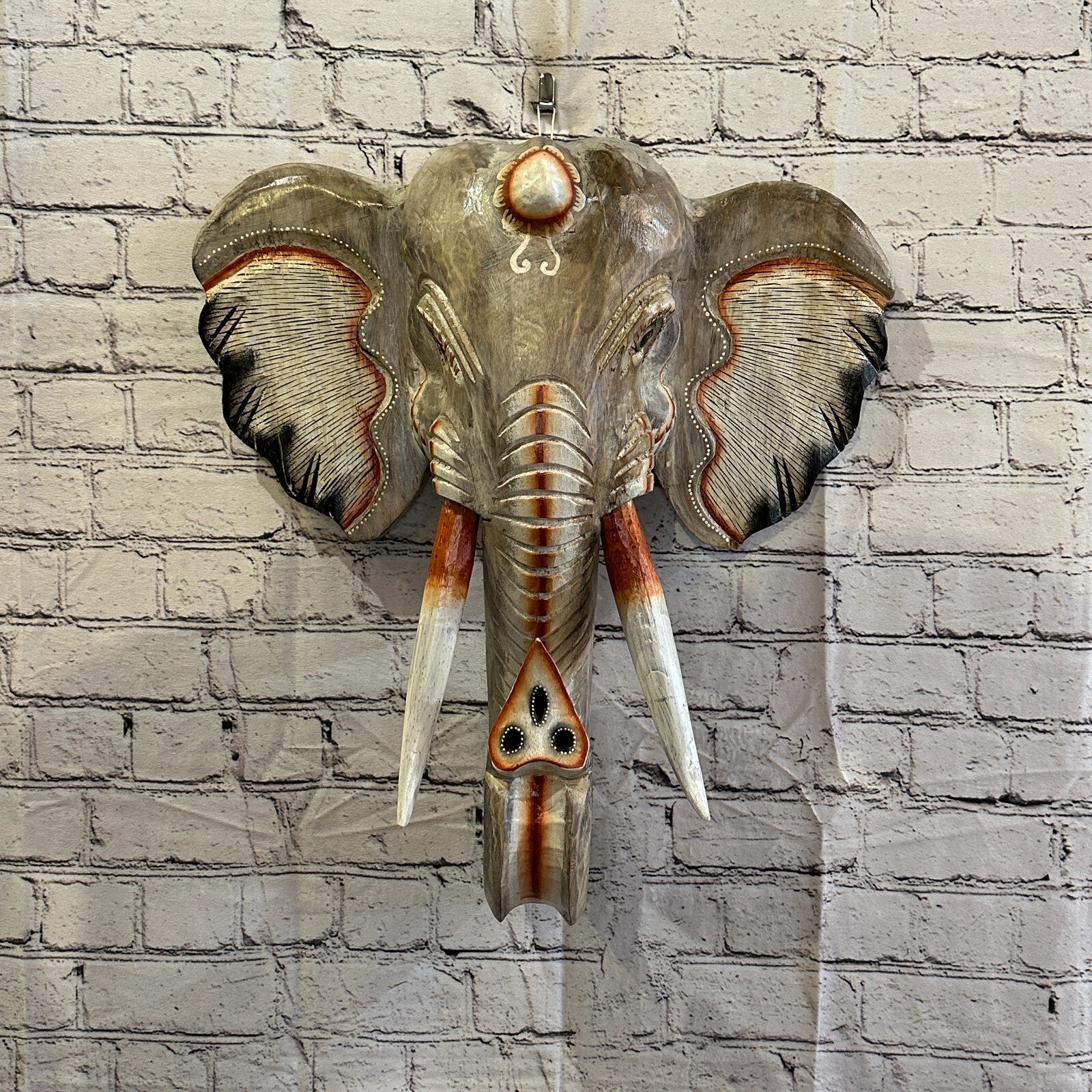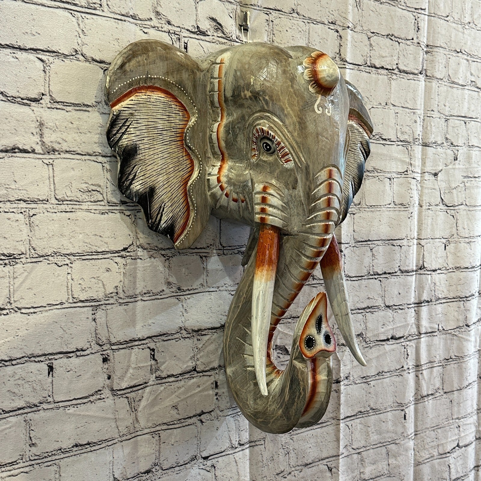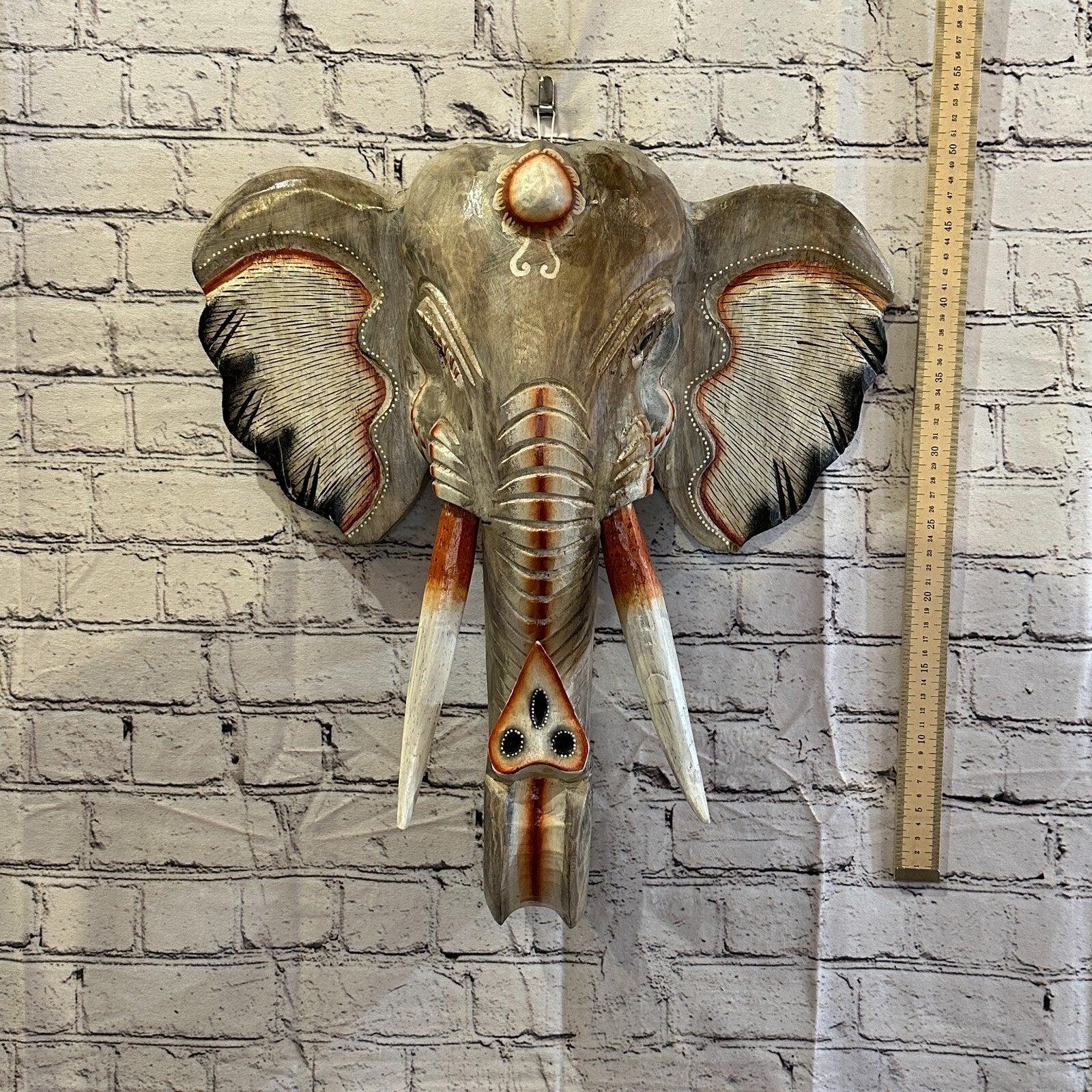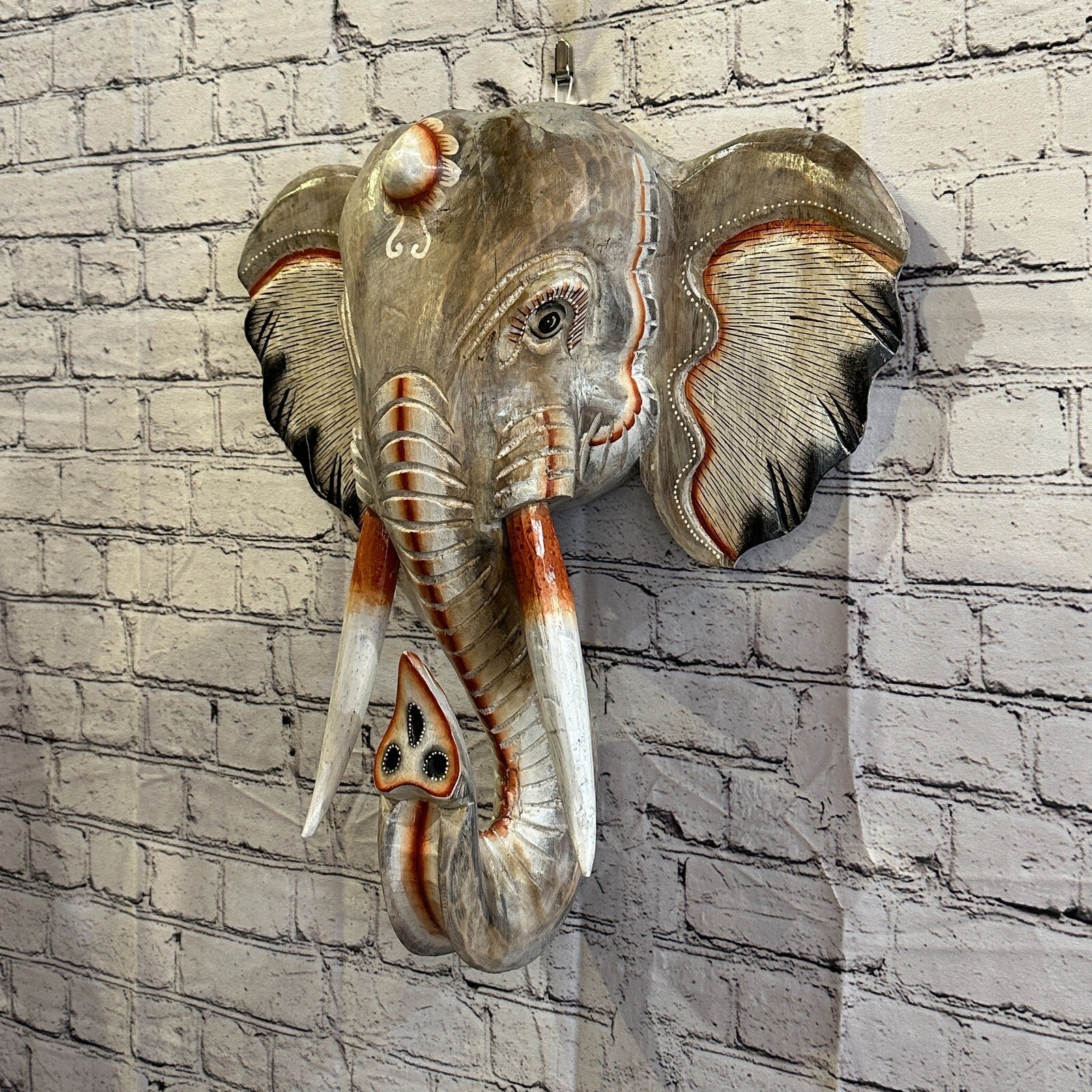 50cm x 45cm Grey Painted Wood Elephant Head Wall Mounted Art Large Shabby