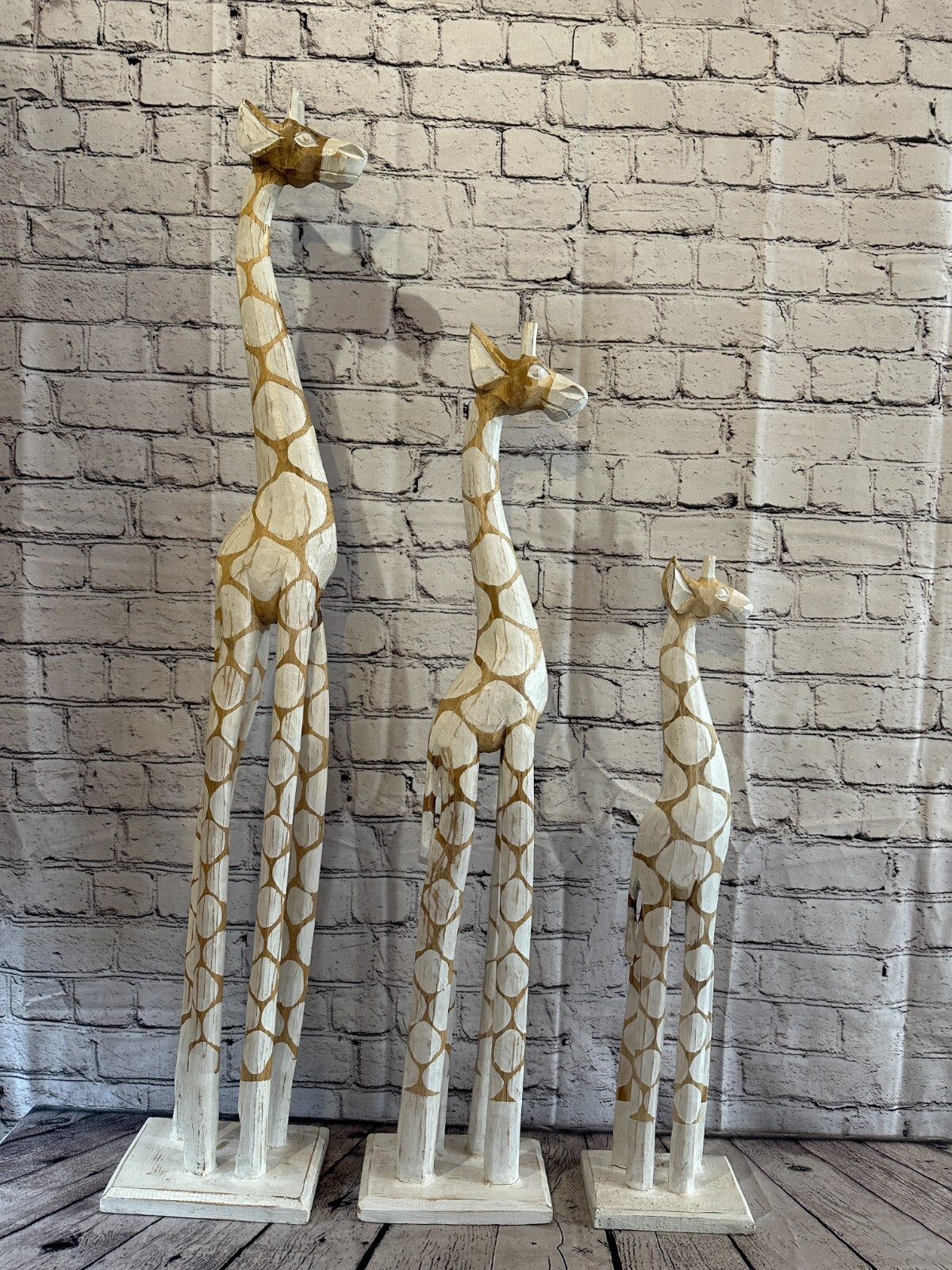 60cm White Dot Painted Wood Giraffe Tall Statue Wood Modern Hand Carved Painted