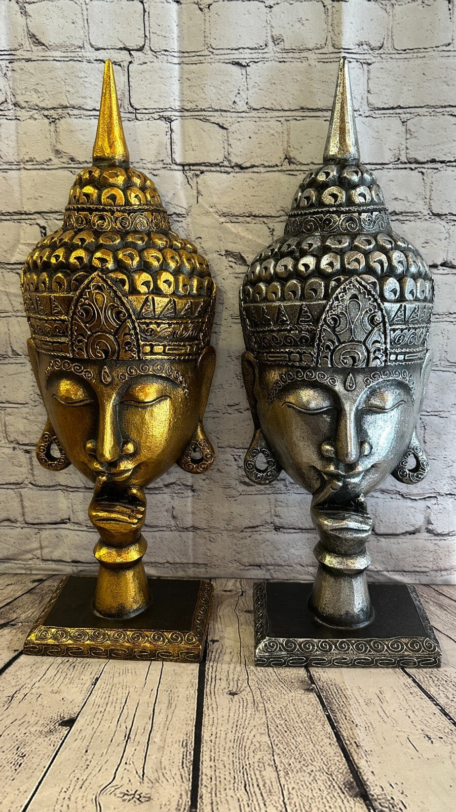 65cm Gold Buddha Head Wooden Standing Statue Figurine Ornament Fair Trade