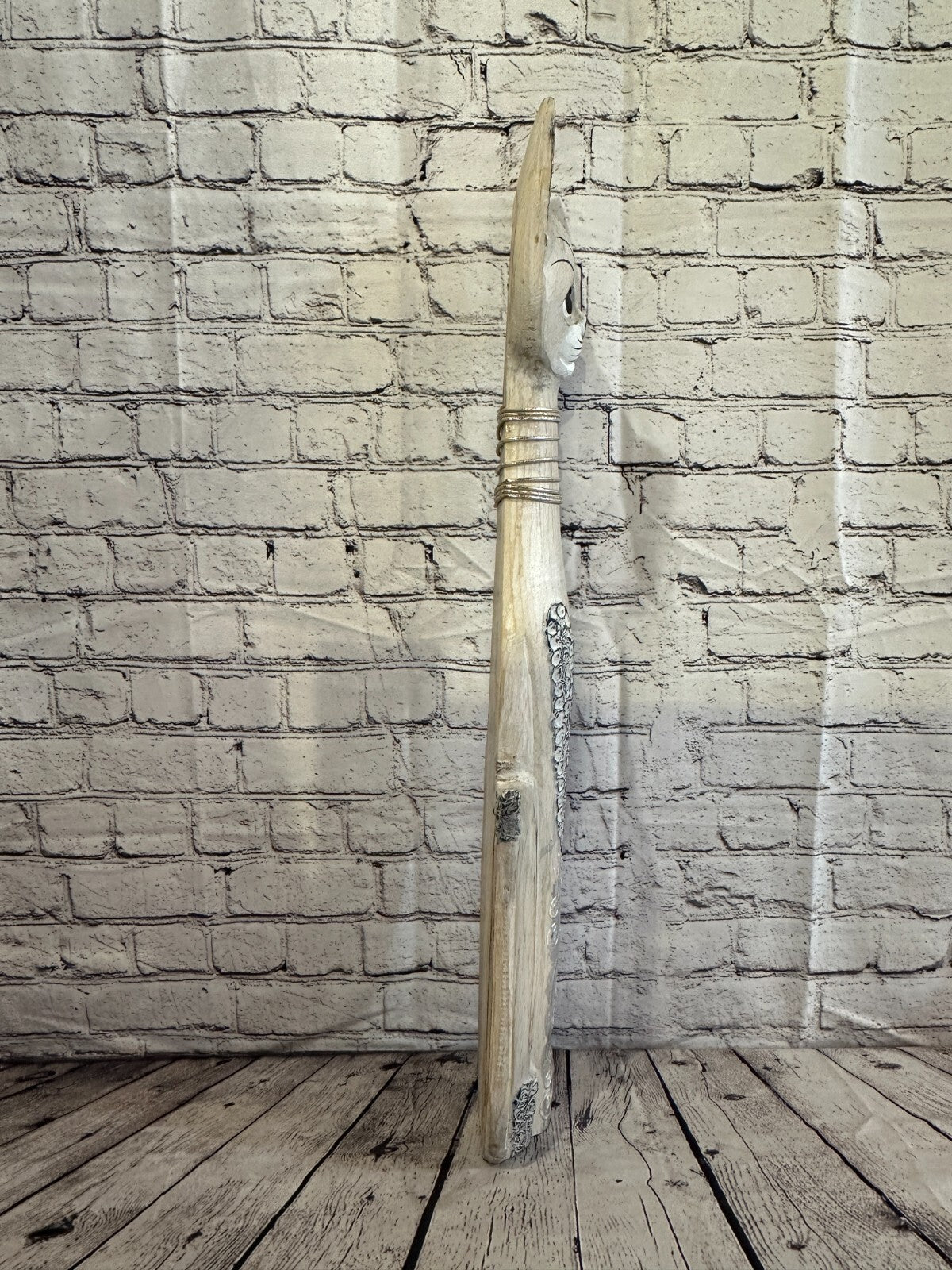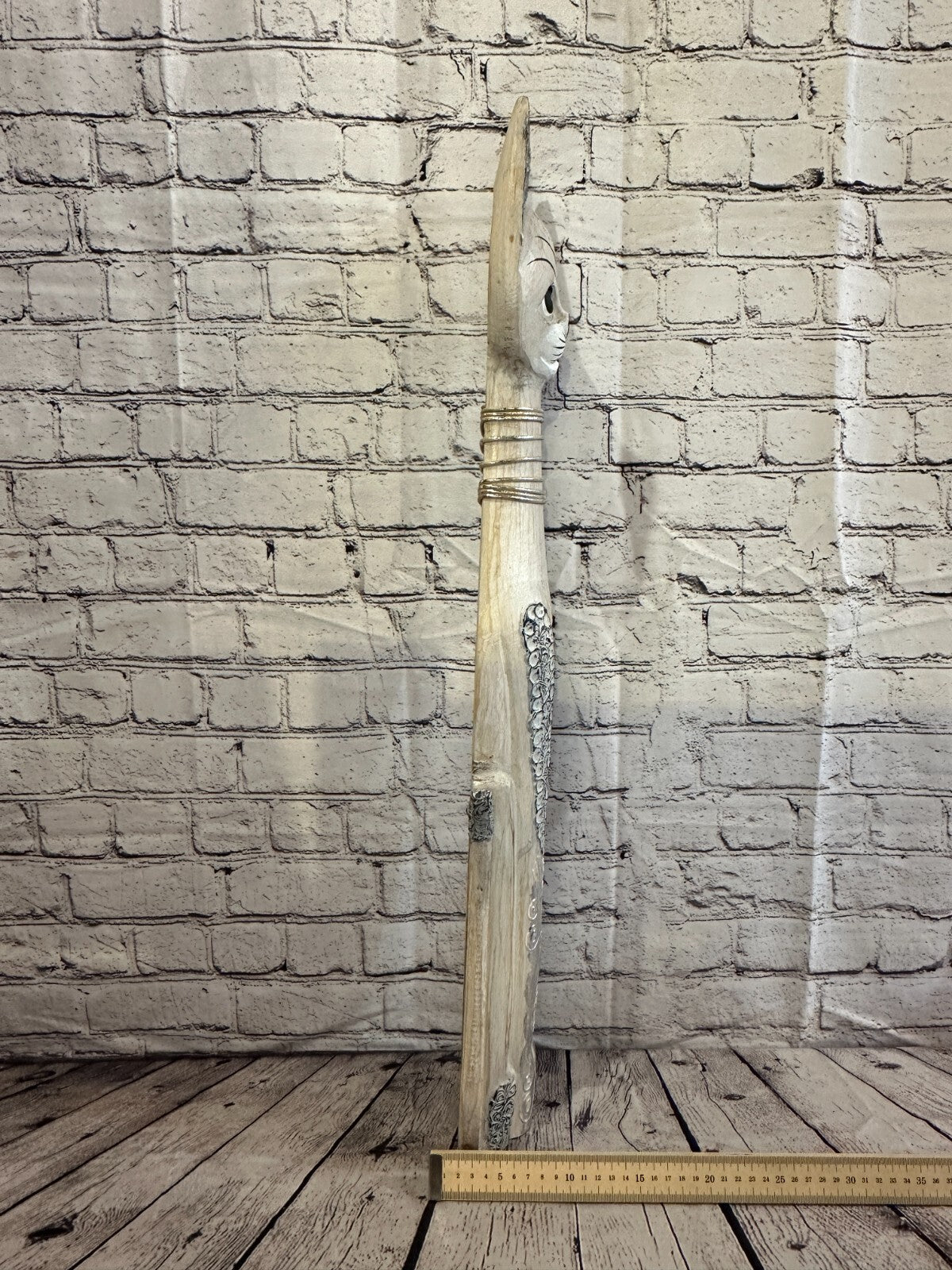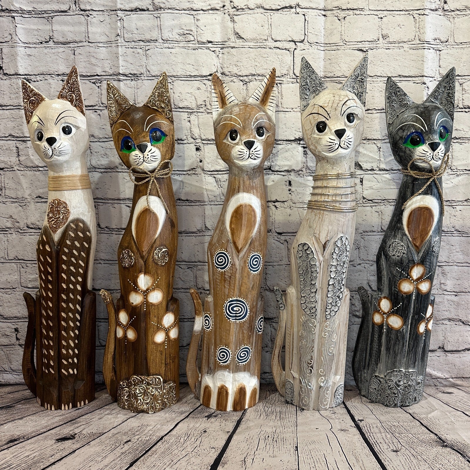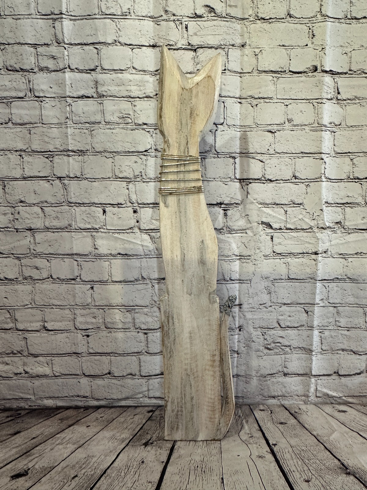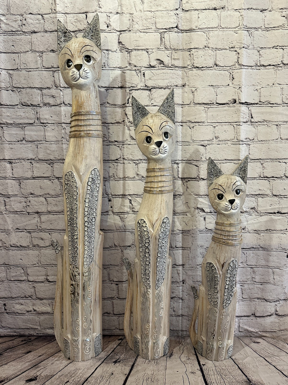 80cm White Swirl Flower Wooden Shabby Cat Statue Ornament Fair Trade Handcarved