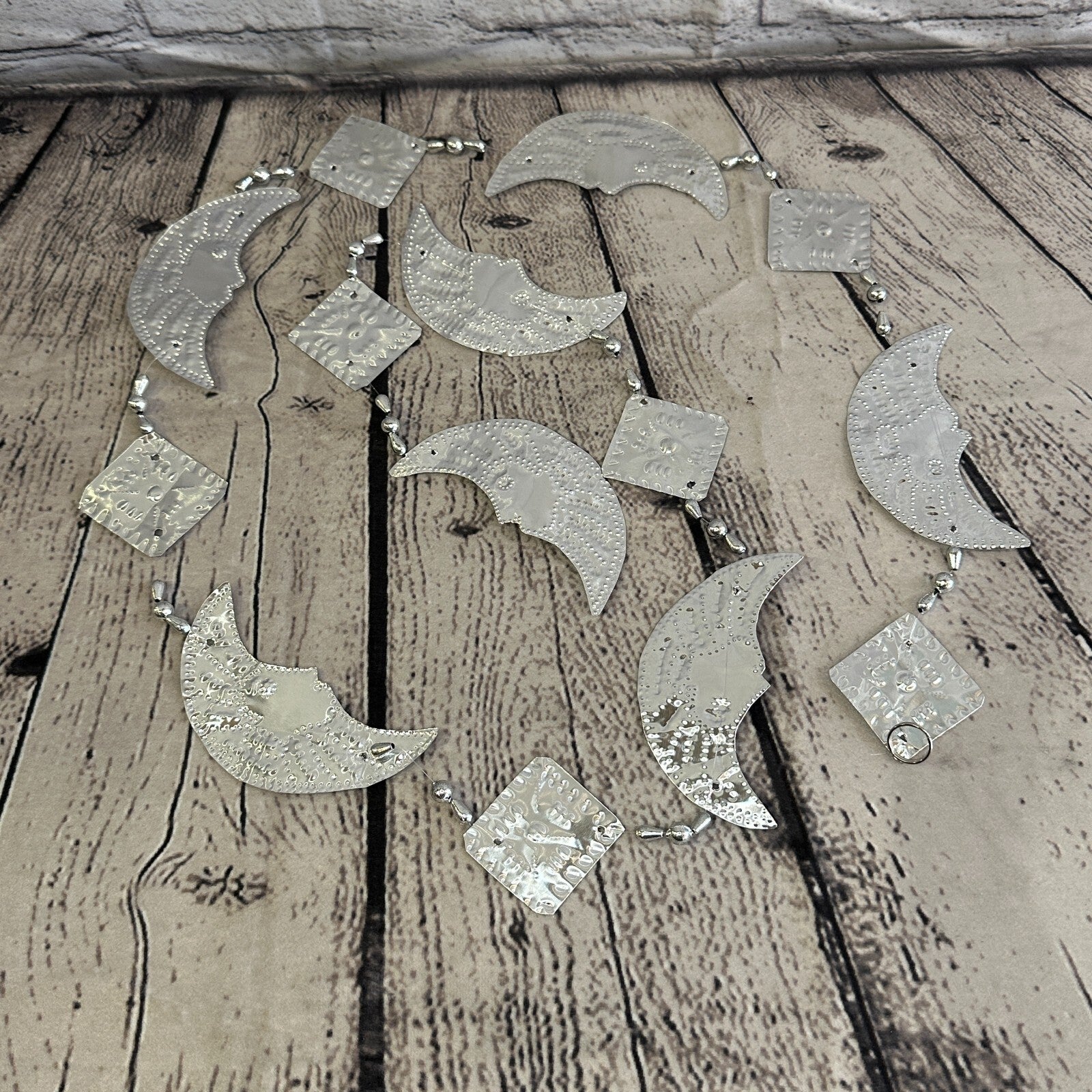 Aluminium Stamped Sitting Moon Face String Wall Hangings Home Decoration