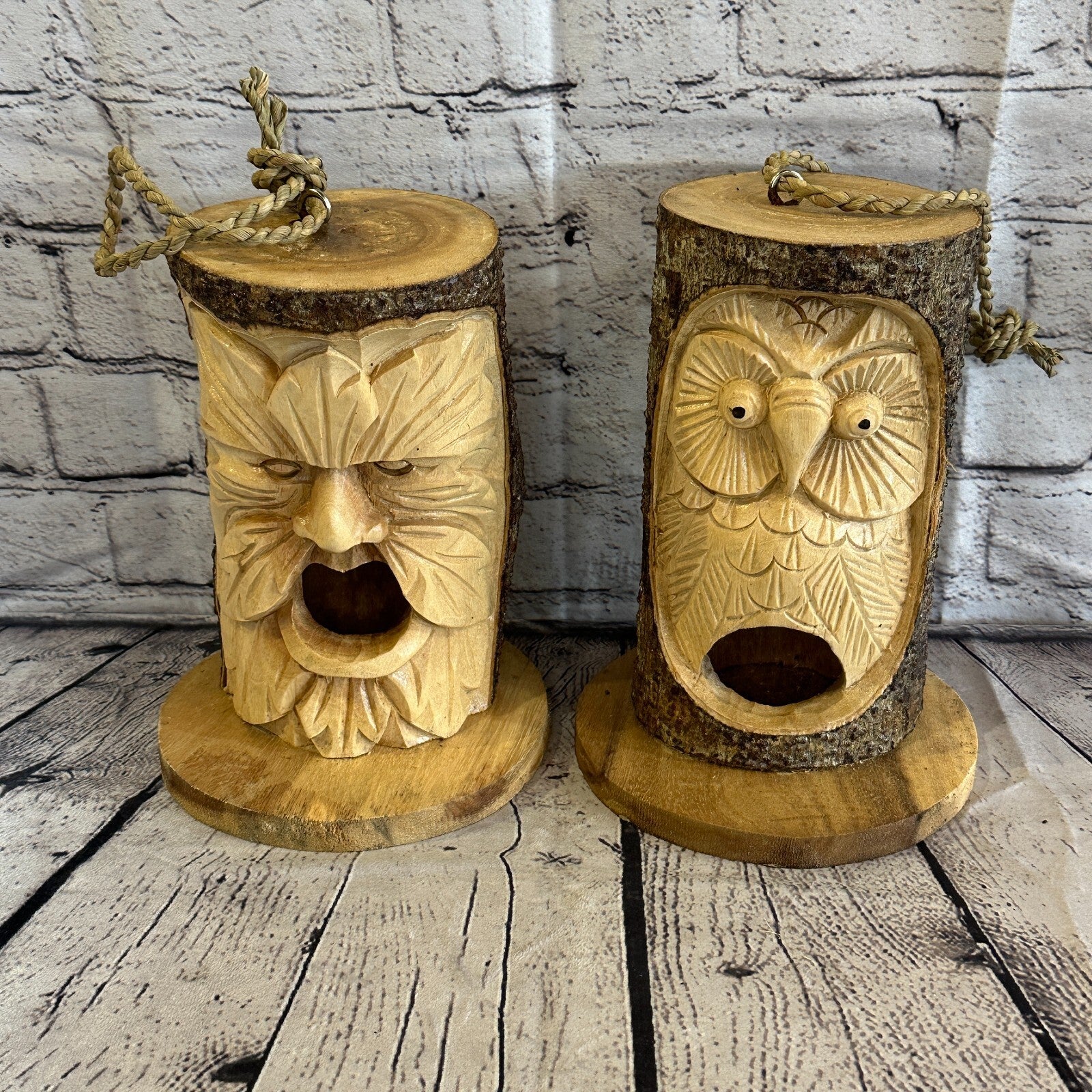 Bird House Barn Owl Of The Woods 25cm Hand Carved Tree Trunk Wood Fairtrade