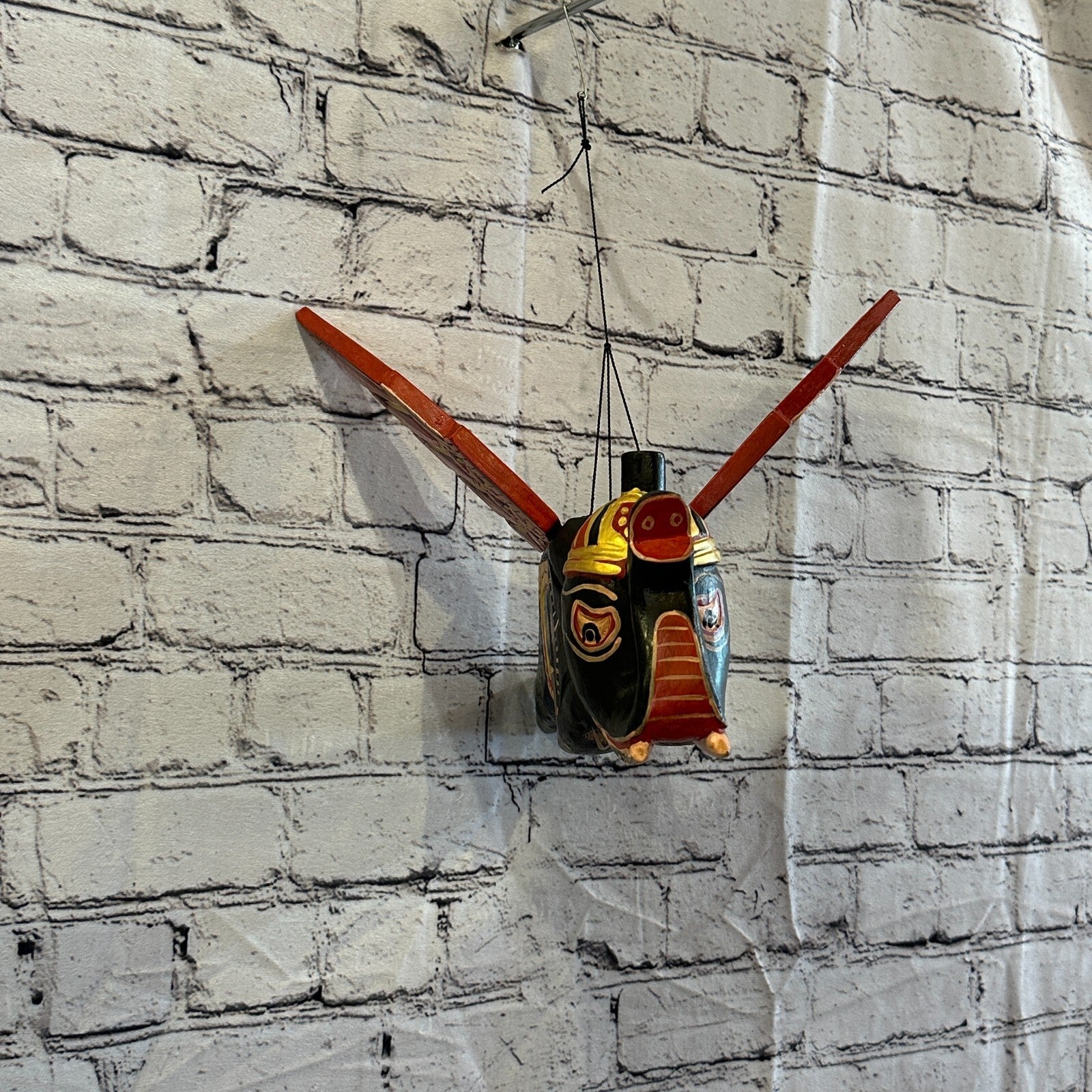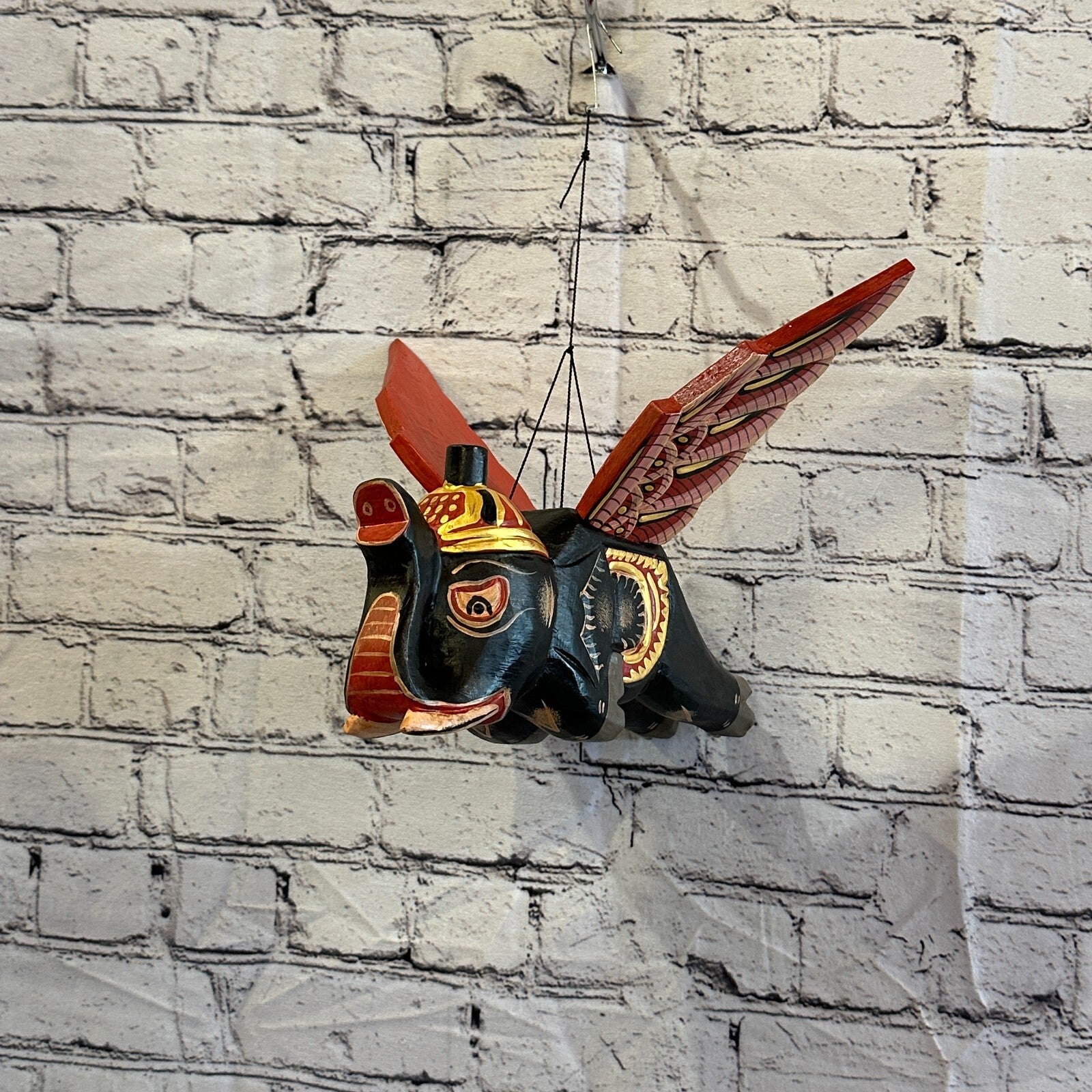 Black Elephant Folk Art Carved Wood Flying Winged Mobile Spirit Chaser Guardian