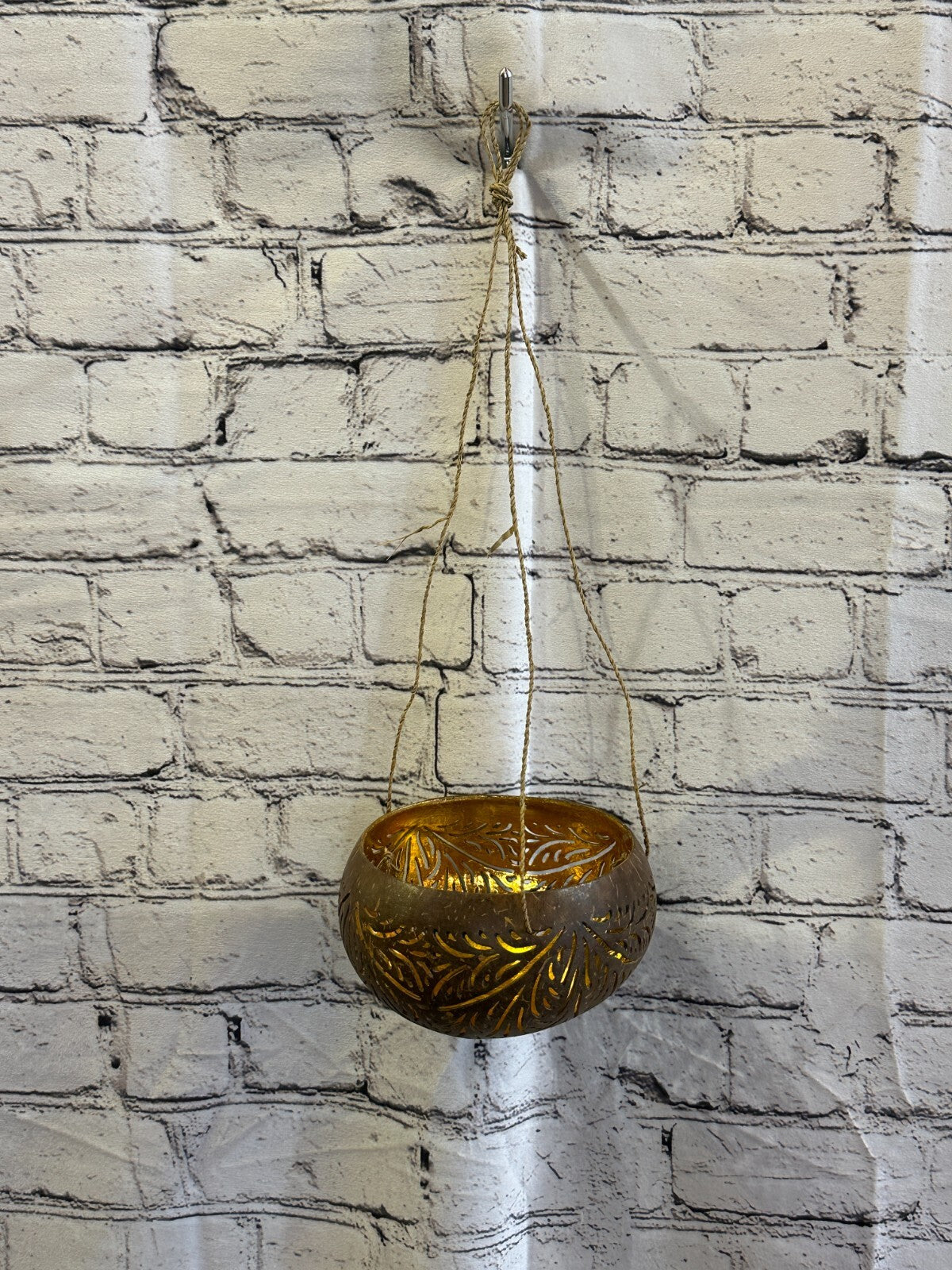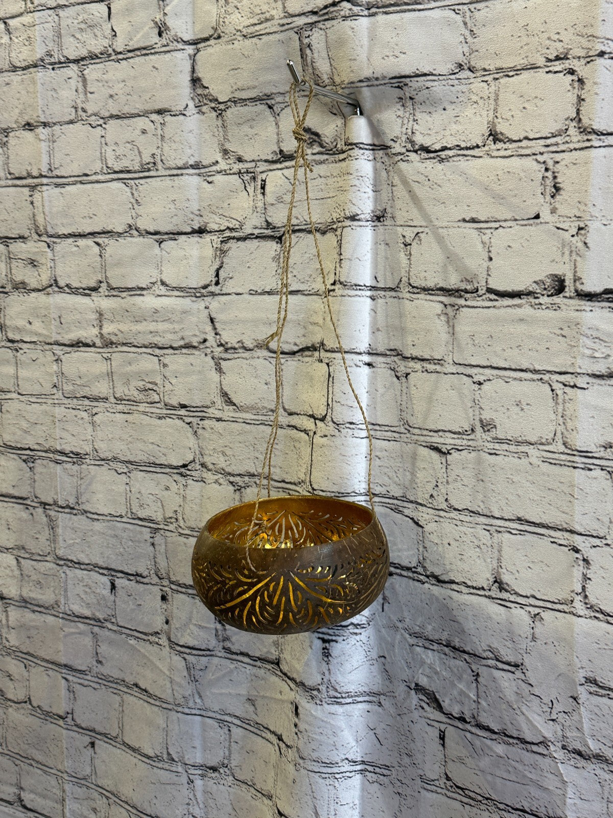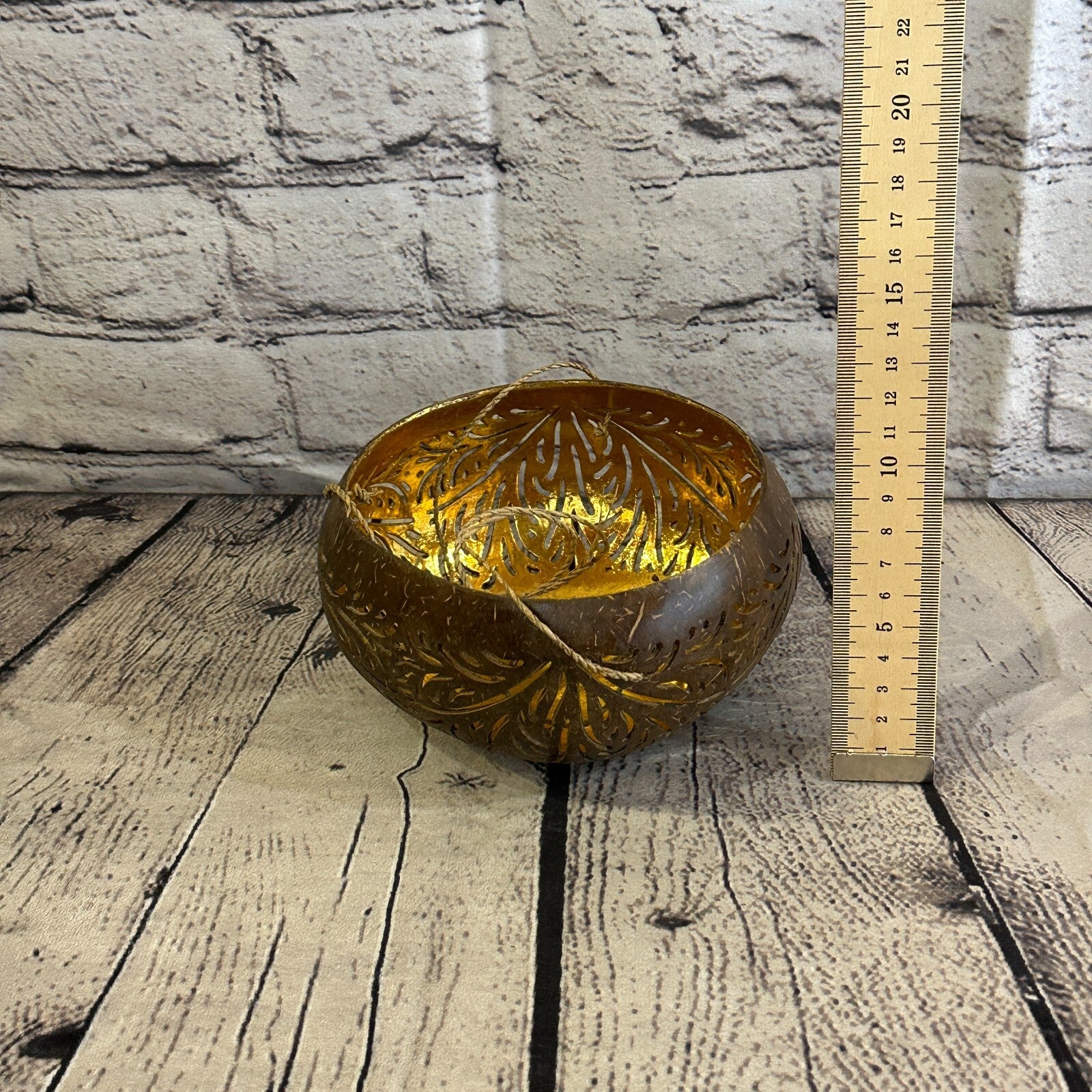Gold Inside Coconut Shell Hanging Basket Orchid Planter Balcony Decorative Vase