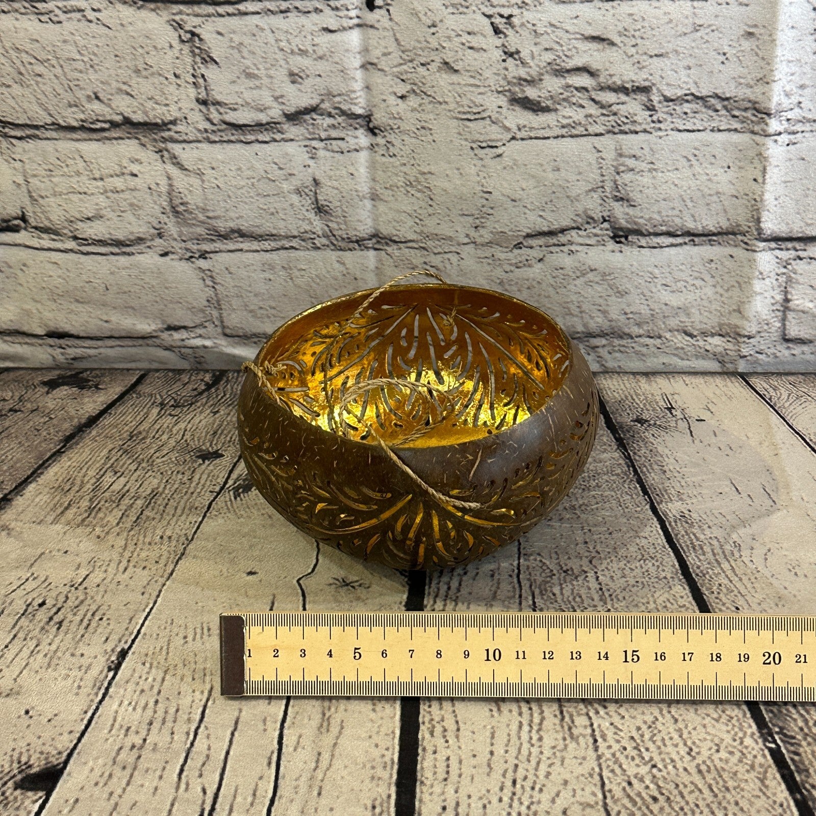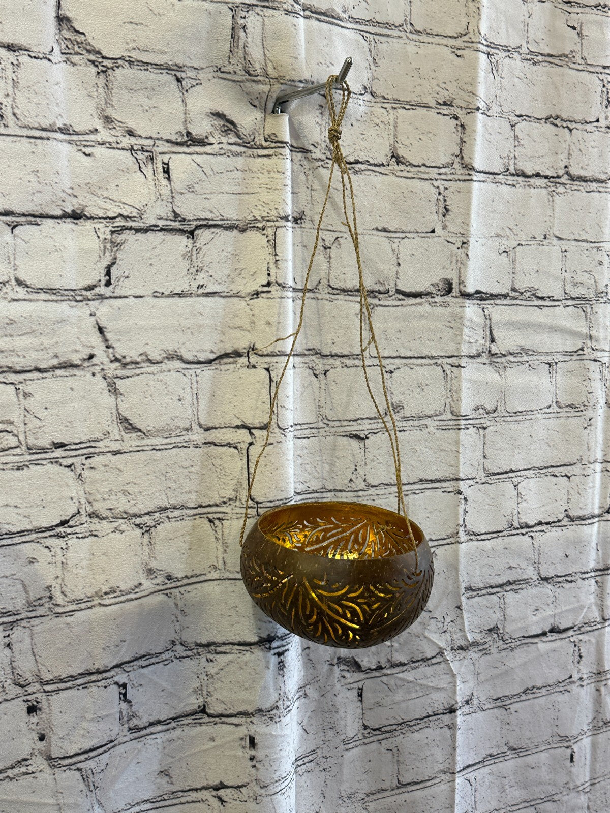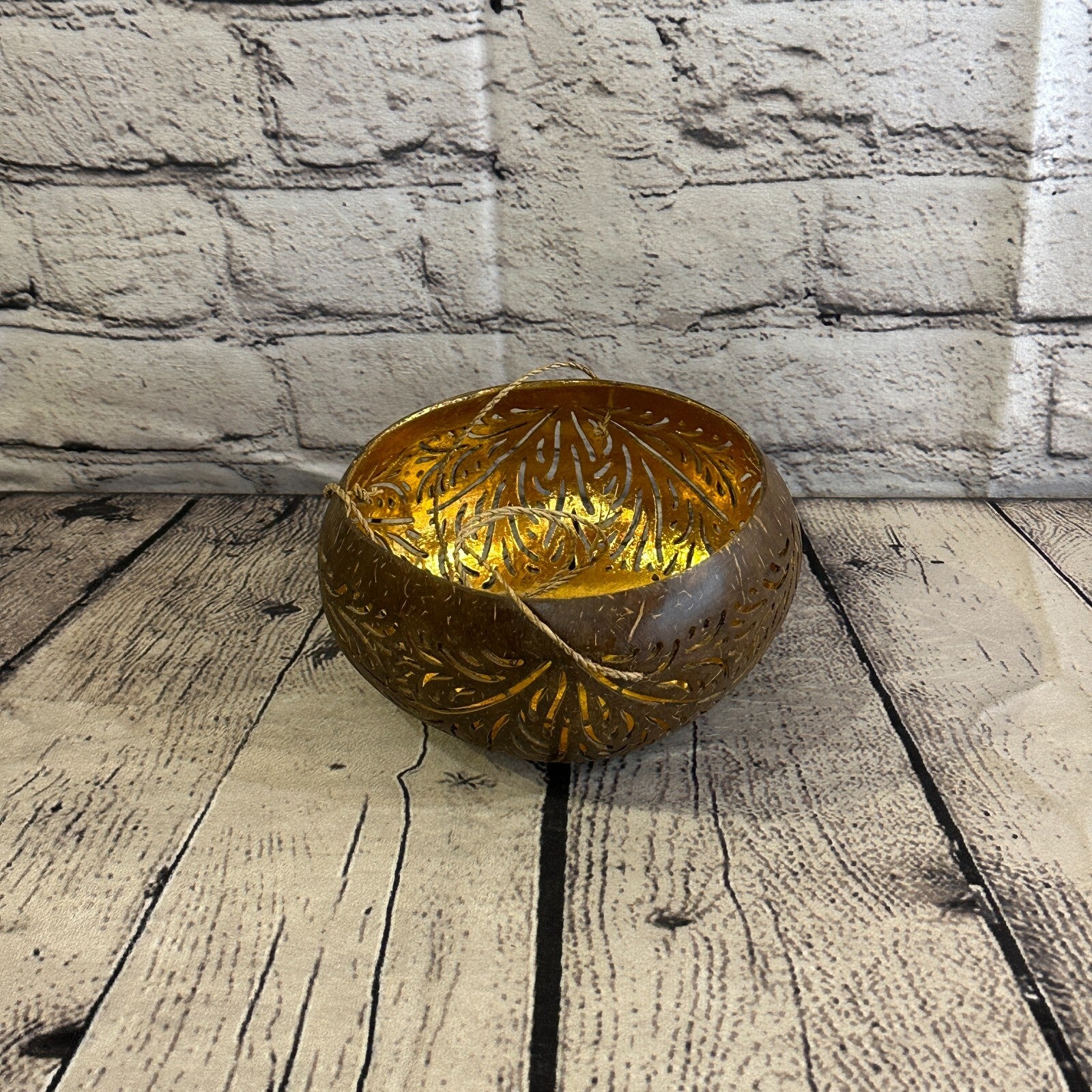 Gold Inside Coconut Shell Hanging Basket Orchid Planter Balcony Decorative Vase
