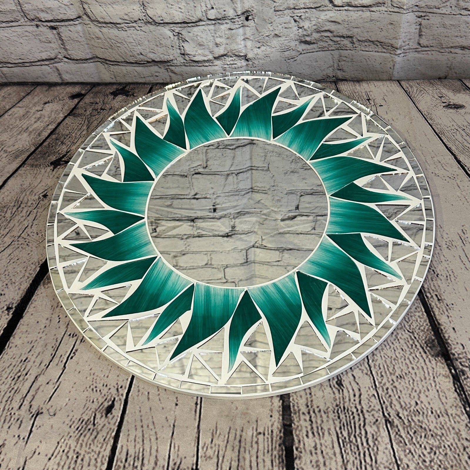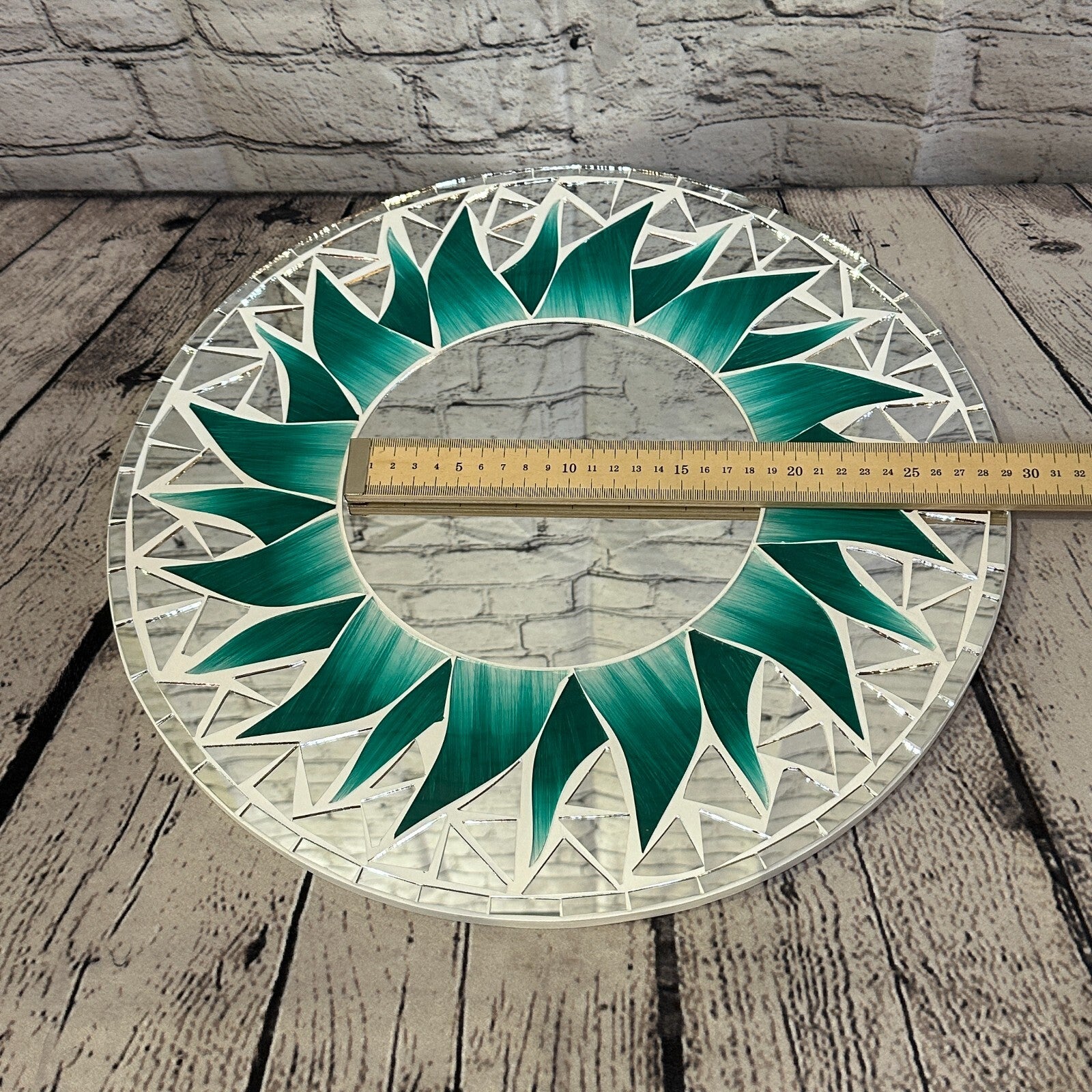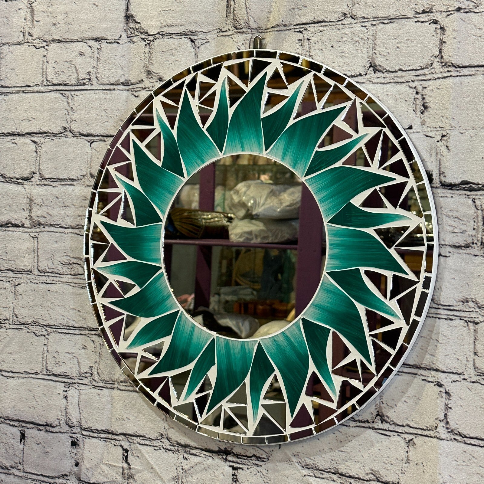 Green Flame Sun Mosaic Tile Wall Mirror 40cm x 40cm 16 Inches Handmade New