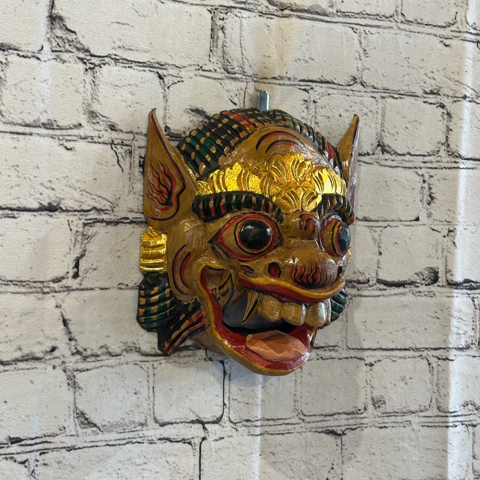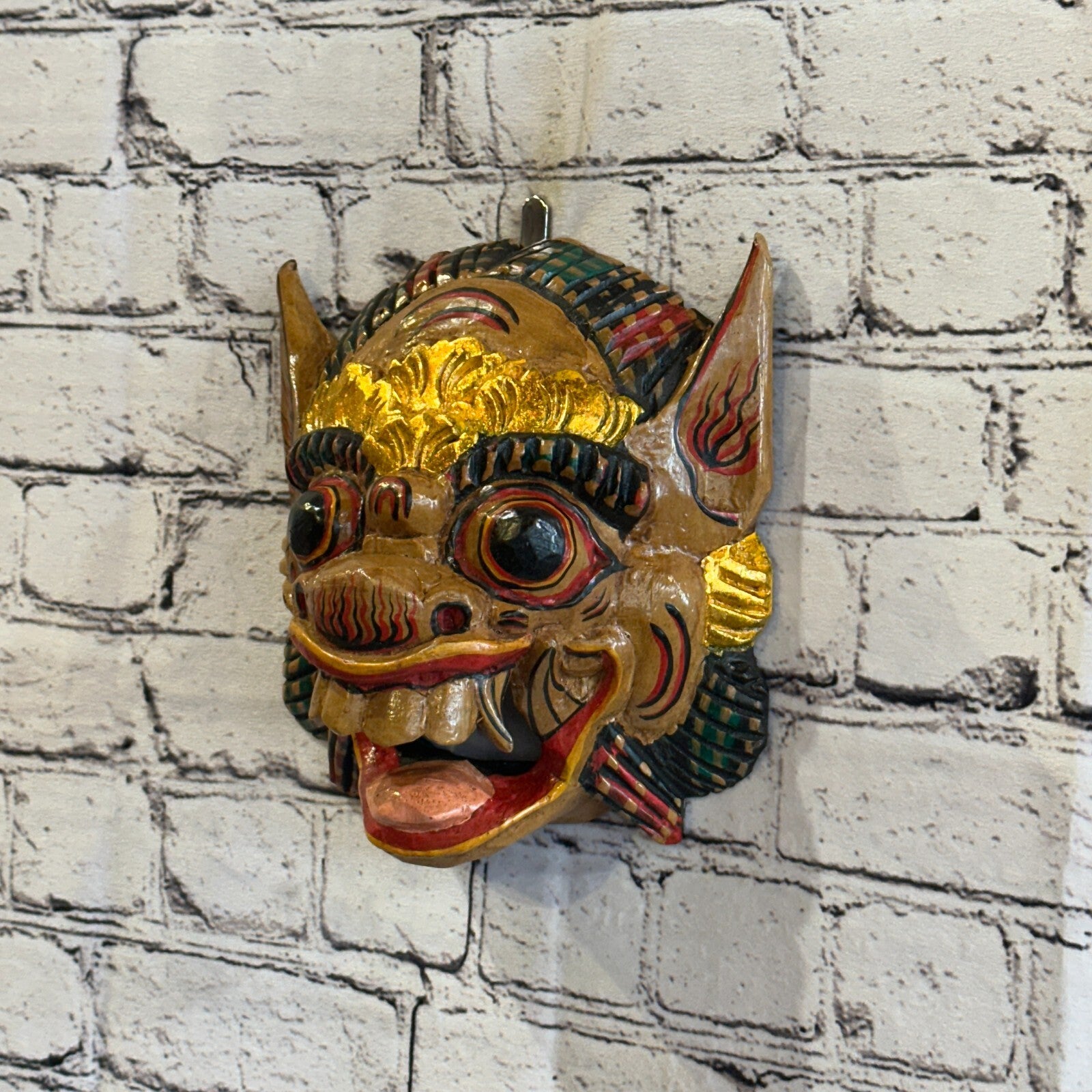 Large Wooden Natural Barong Wall Mask 18cm x 18cm Handmade And Fairtrade Hindu