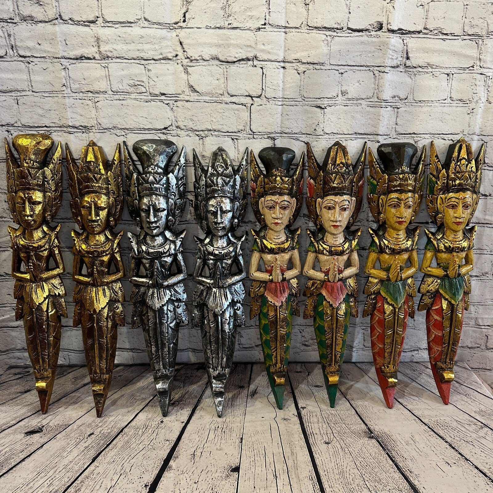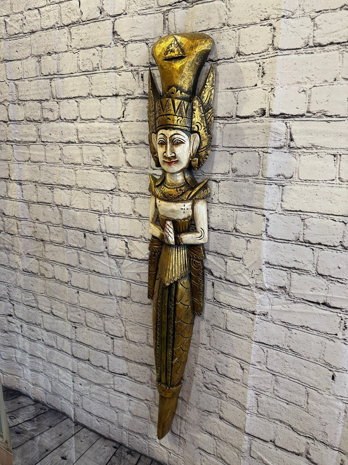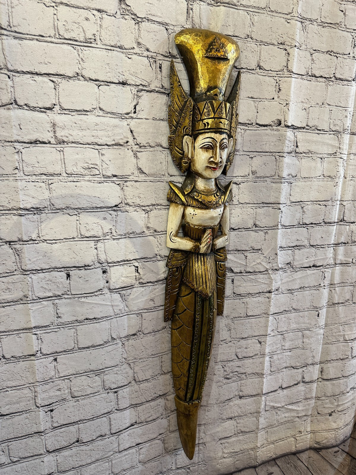 Old Antique Colour Sita Dewi Bali Rice Goddess Wings Mermaid Wood 100cm Pair