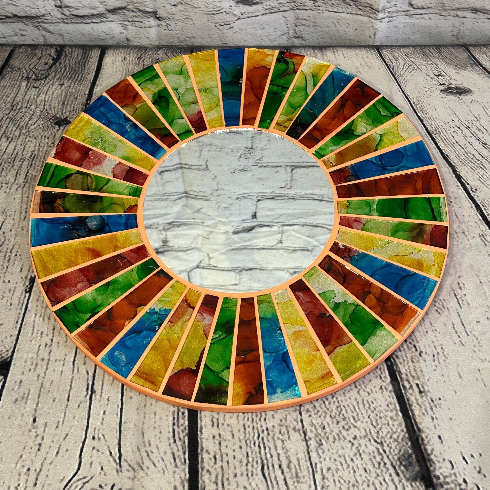 Rainbow Terracotta Line Mosaic Tile Wall Mirror 30cm x 30cm 12 Inches Handmade