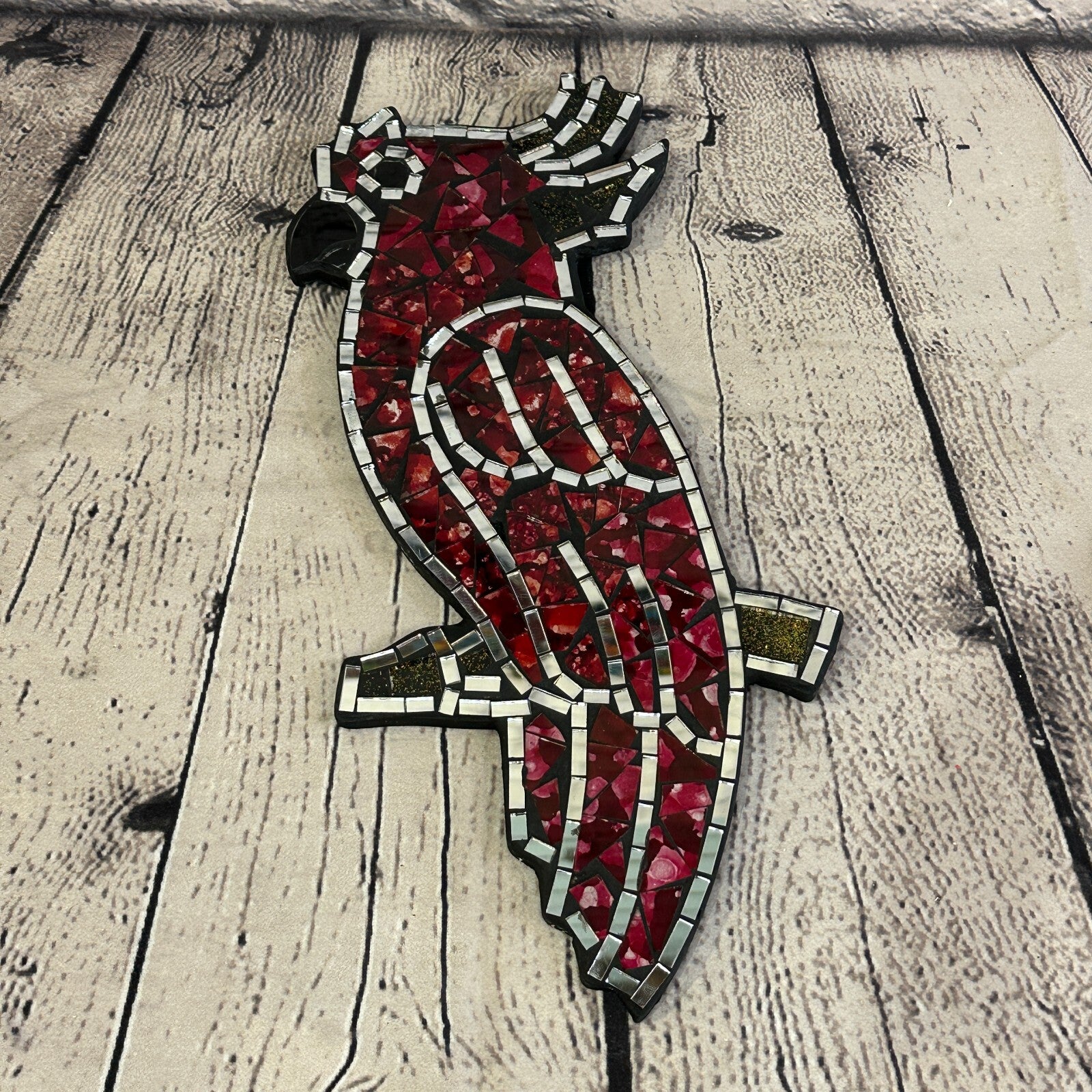 Red Bright Tropical Parrot Mosaic Tile Wall Mirror 30cm x 15cm Handmade New